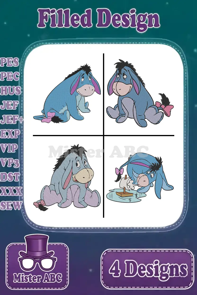 Winnie The Pooh – Eeyore Wrapped In Blue Blanket And With Butterflies Near Honey Pot – Cozy Donkey – Filled Embroidery Design