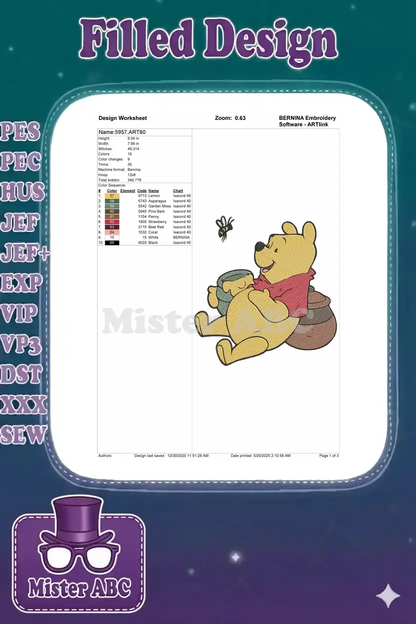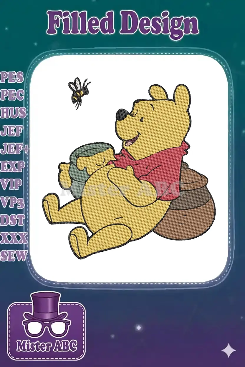 Winnie the Pooh enjoying honey pot with bee embroidery designs