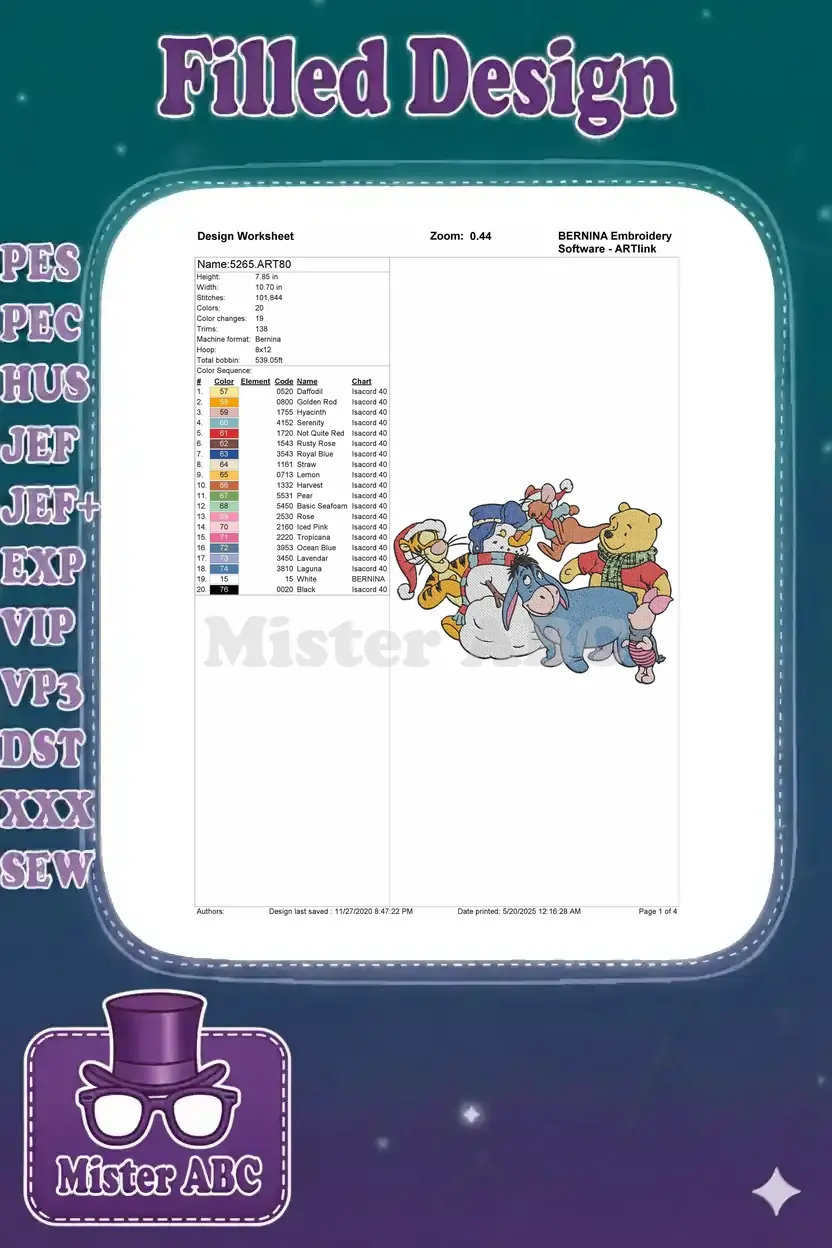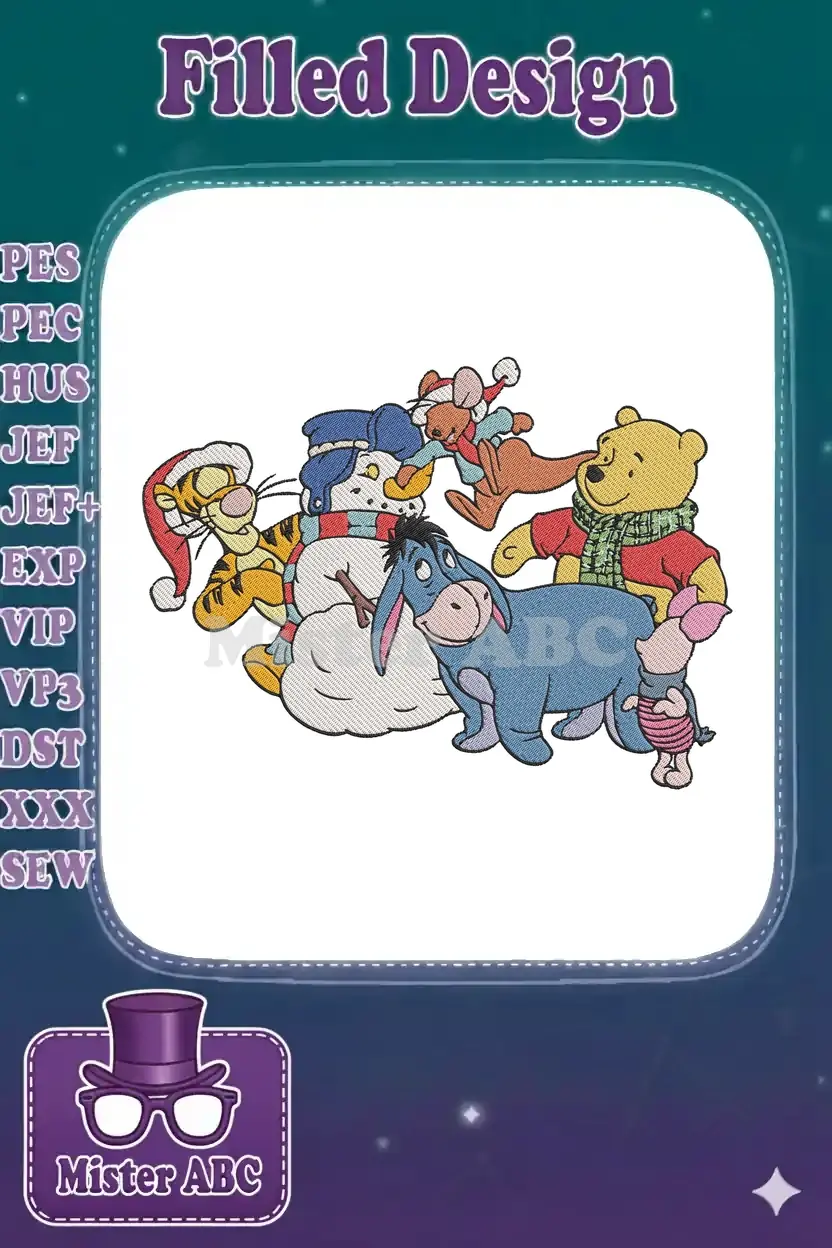 Winnie the Pooh and Friends Christmas Snowman embroidery designs
