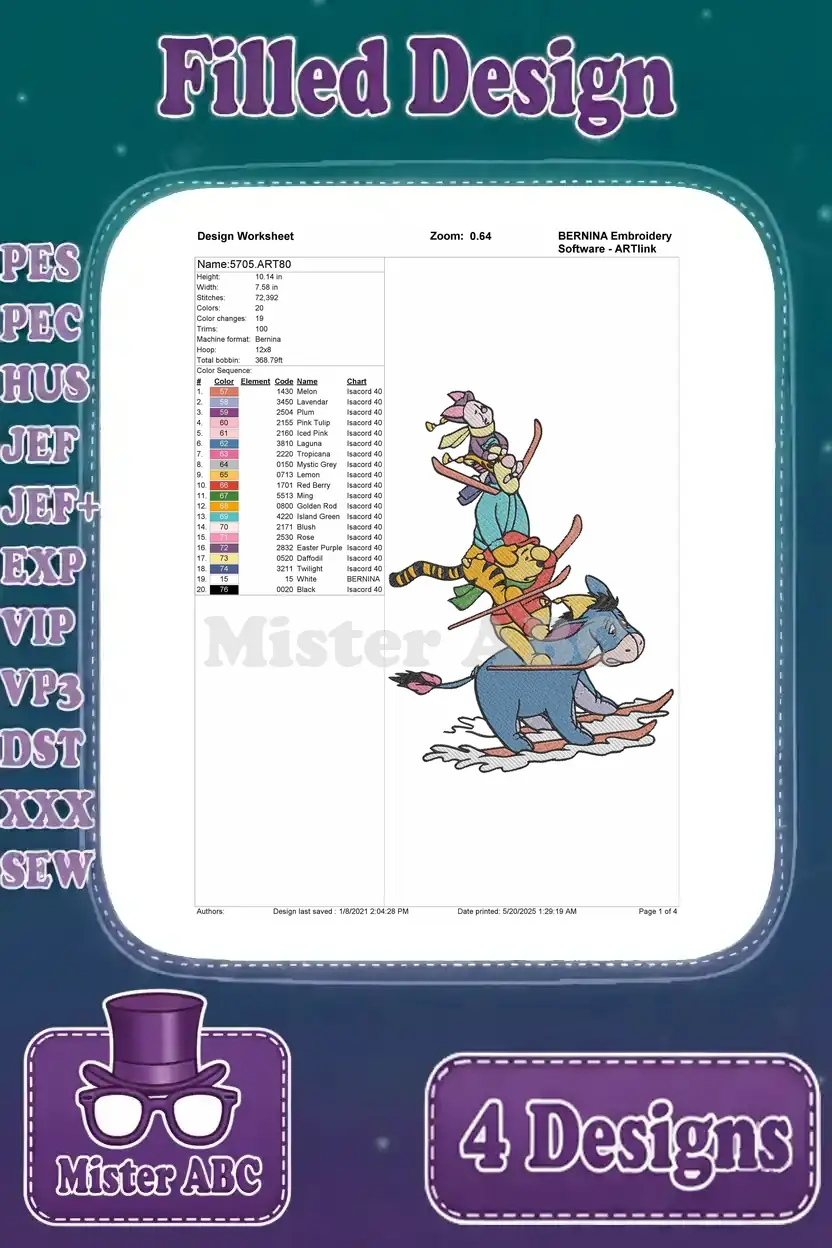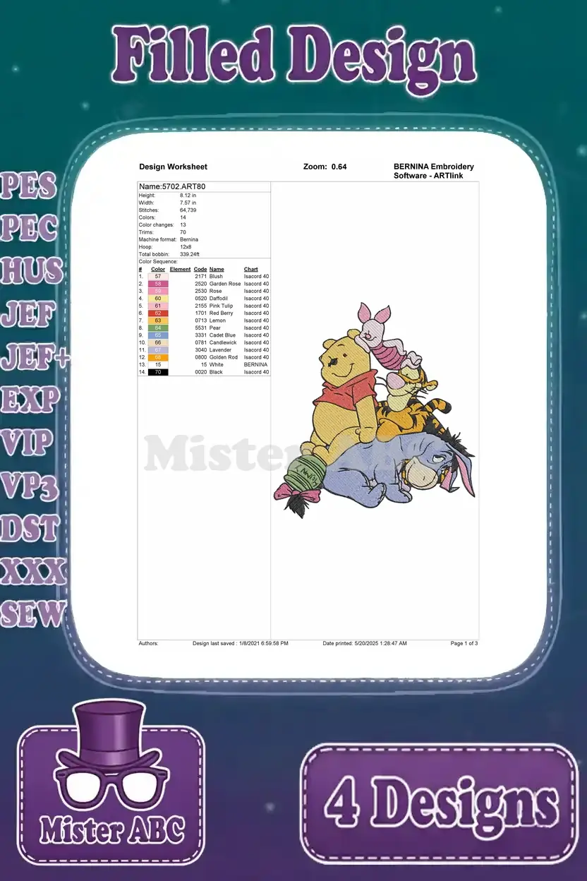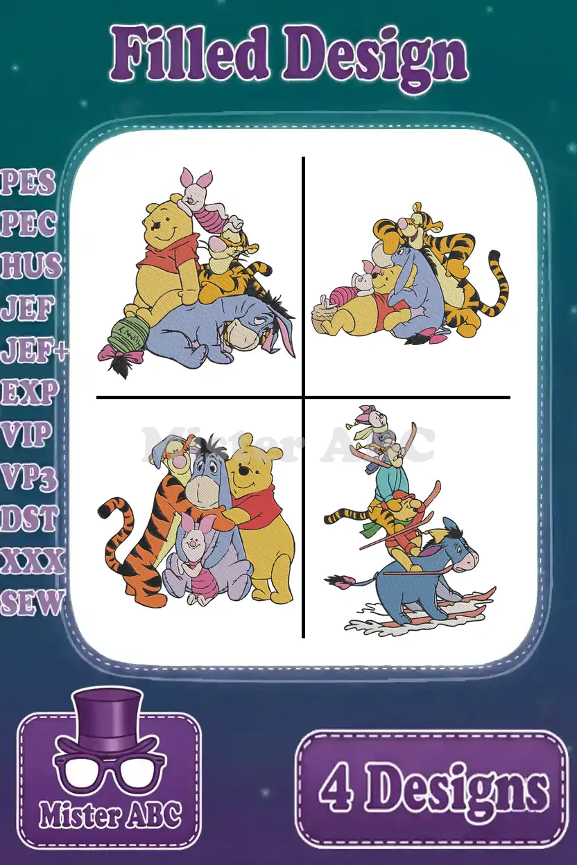 Winnie The Pooh And Friends Pooh Tigger Eeyore Piglet Group Hugs And Stacking – Filled Embroidery Design