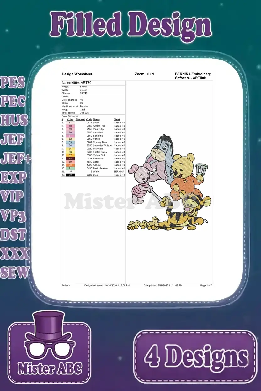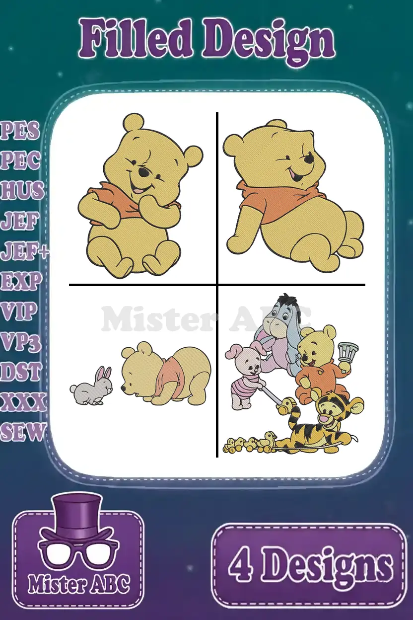 Winnie The Pooh And Friends – Pooh With Rabbit And Group With Piglet Eeyore Tigger – Hundred Acre Wood Crew – Filled Embroidery Design