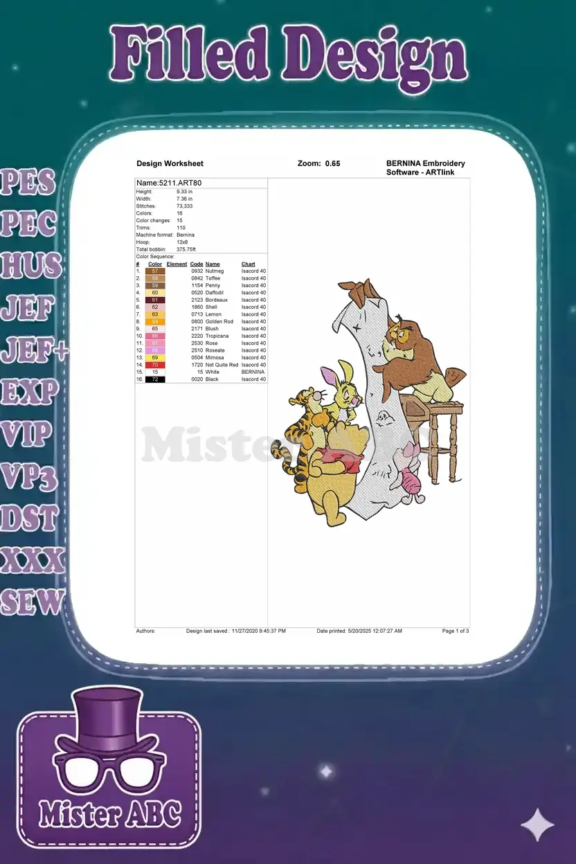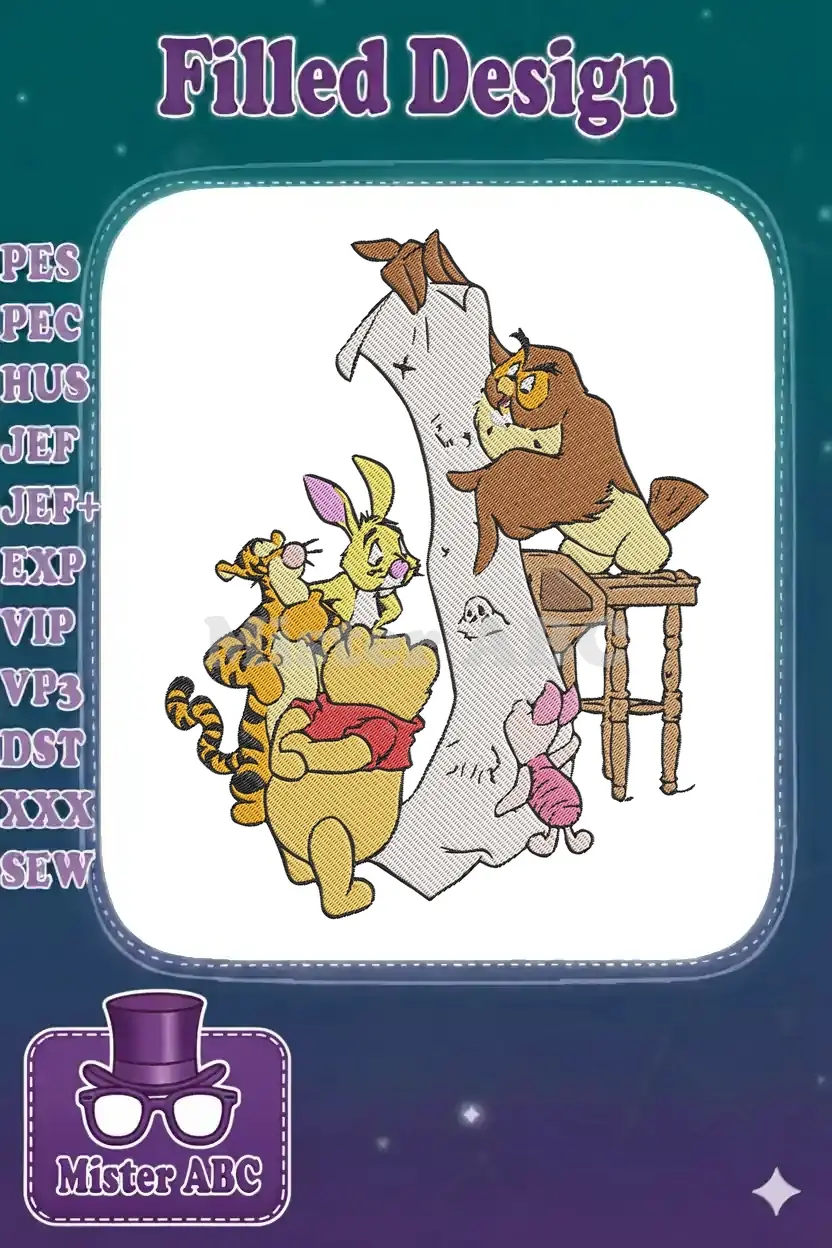 Winnie the Pooh and Friends reading a long scroll embroidery designs
