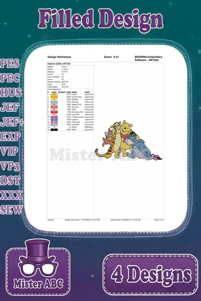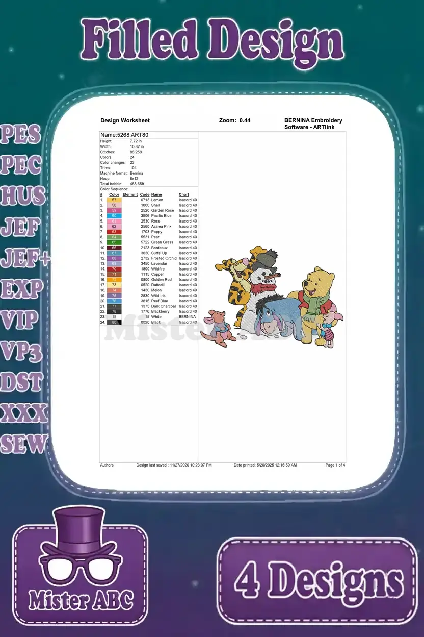 Winnie The Pooh And Friends Snowman Scene Pooh Piglet Tigger Eeyore Rabbit Group – Filled Embroidery Design