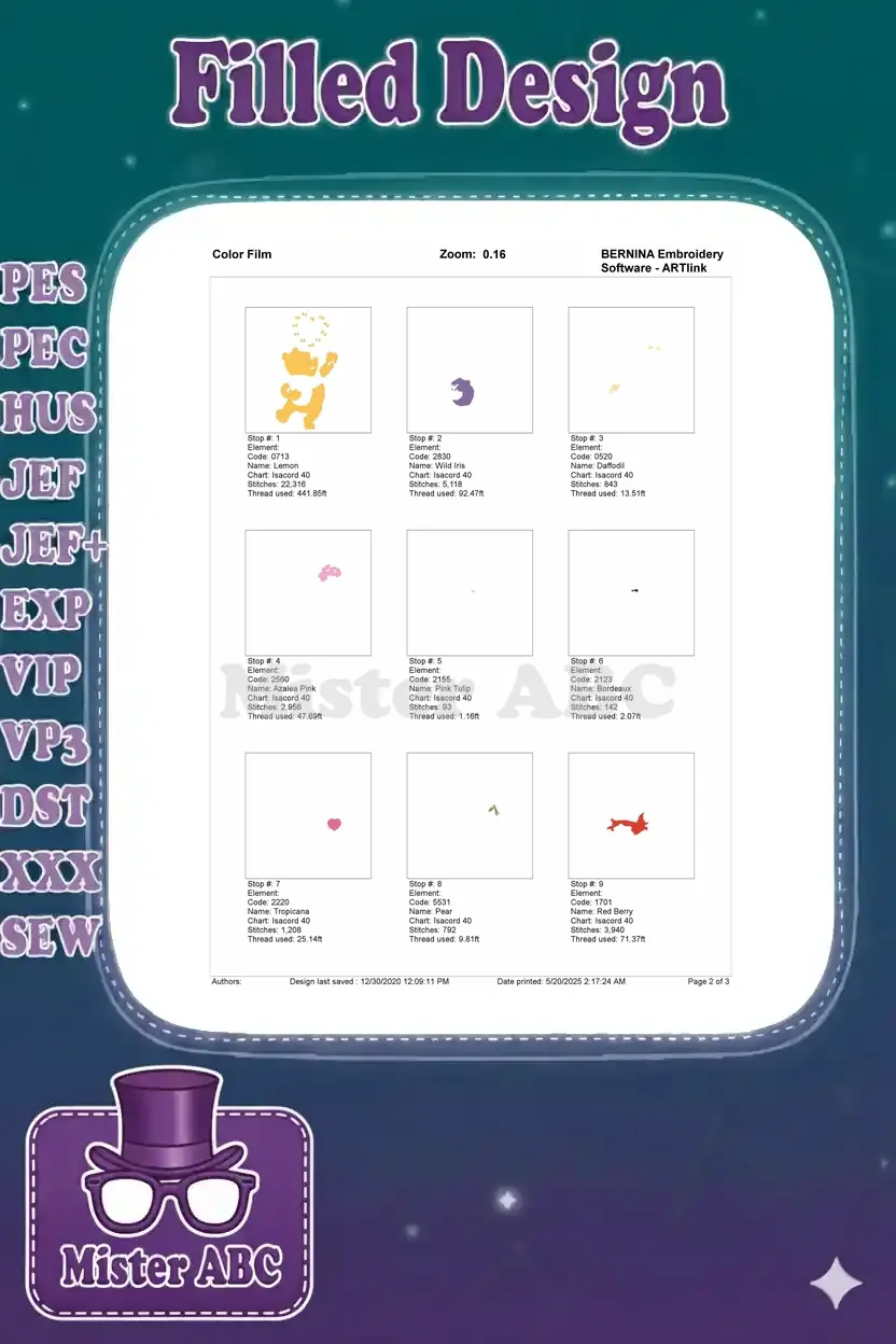 | Stitches | Colors | Thread Changes |