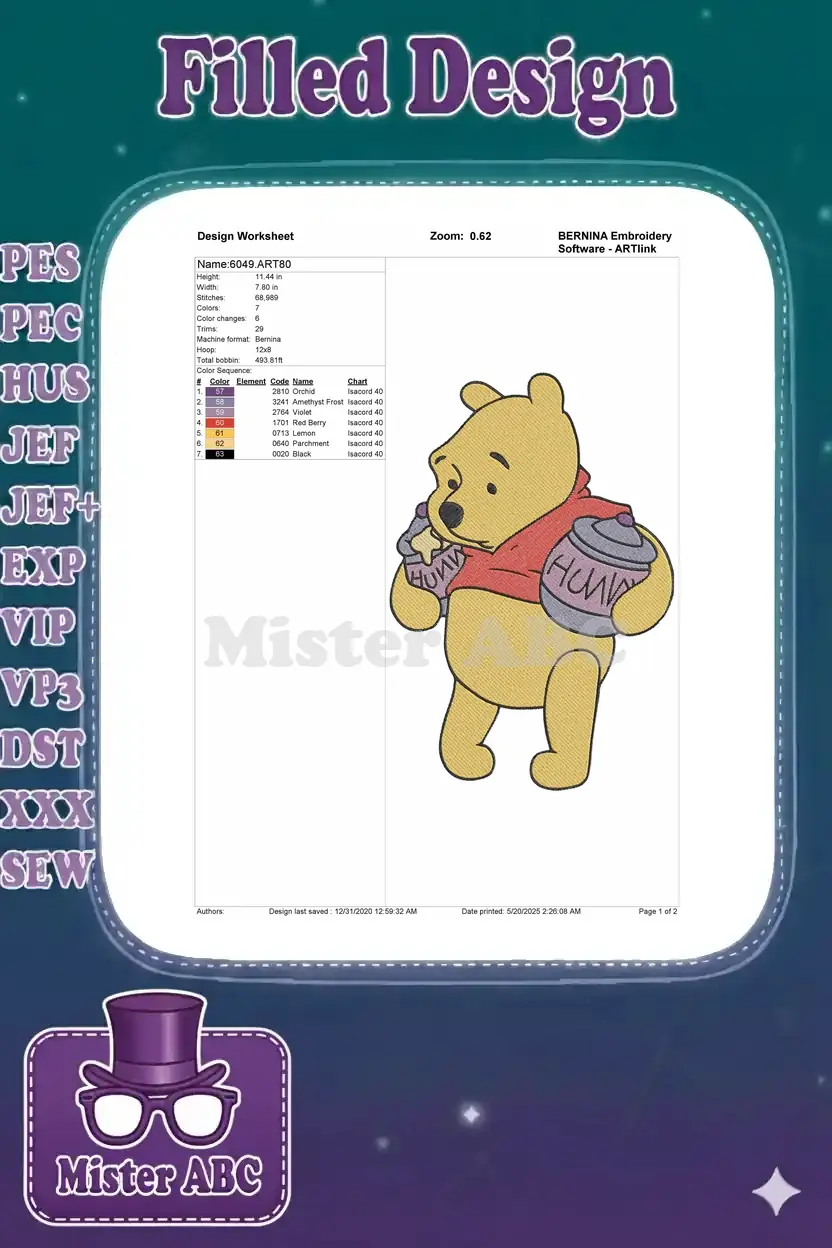Winnie the Pooh holding honey pots cartoon embroidery designs - Instant Download Winnie the Pooh holding honey pots cartoon embroidery designs – Instant Download