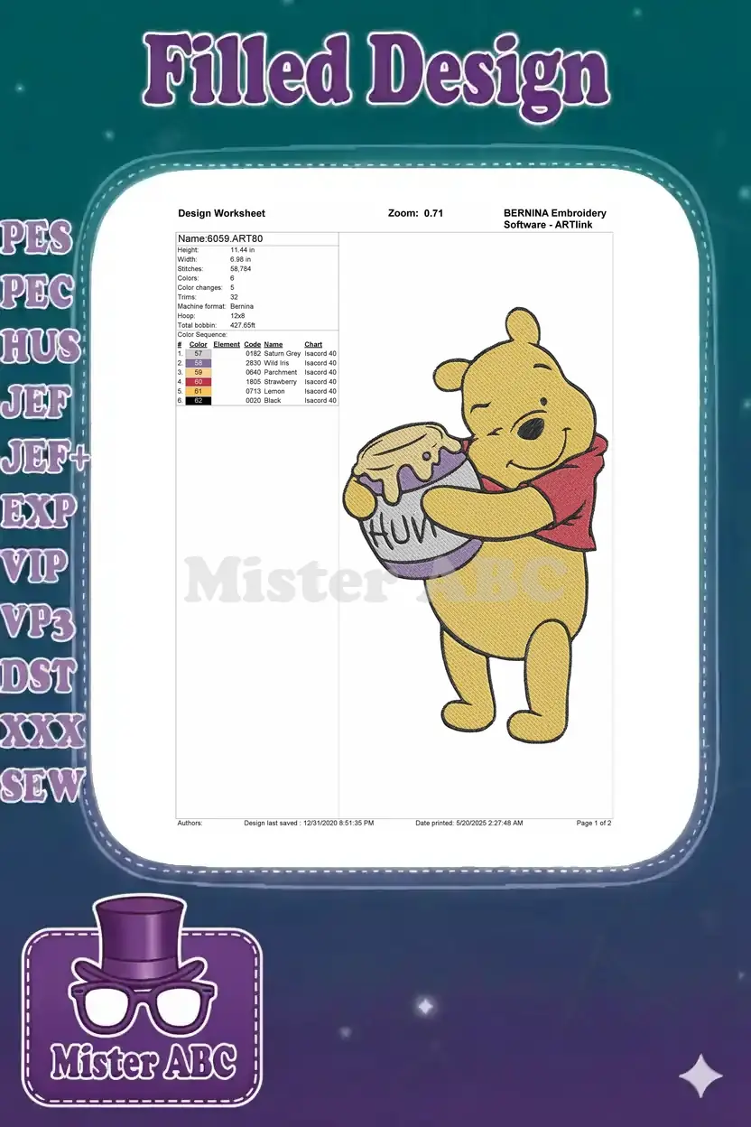 Winnie the Pooh holding honey pot classic cartoon embroidery designs
