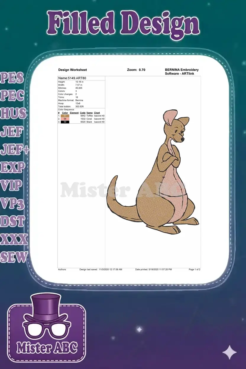 Winnie the Pooh Kanga pensive kangaroo embroidery designs