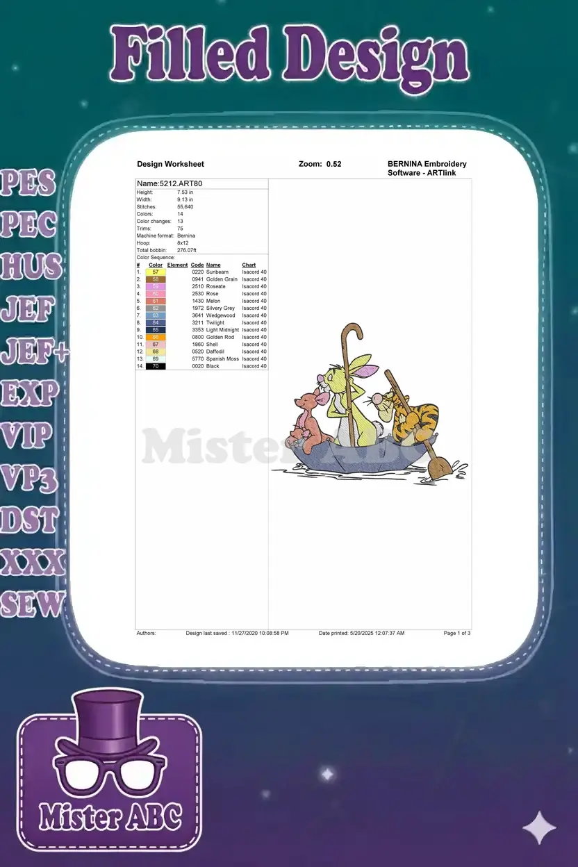 Winnie Pooh Kanga Roo Rabbit Tigger umbrella boat embroidery designs