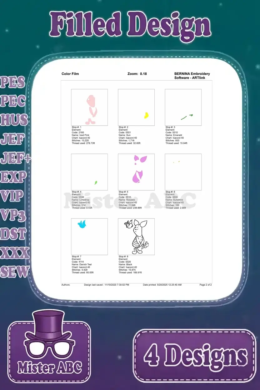 Winnie The Pooh Piglet With Apple On Head Bird Butterfly And Flower Poses – Filled Embroidery Design