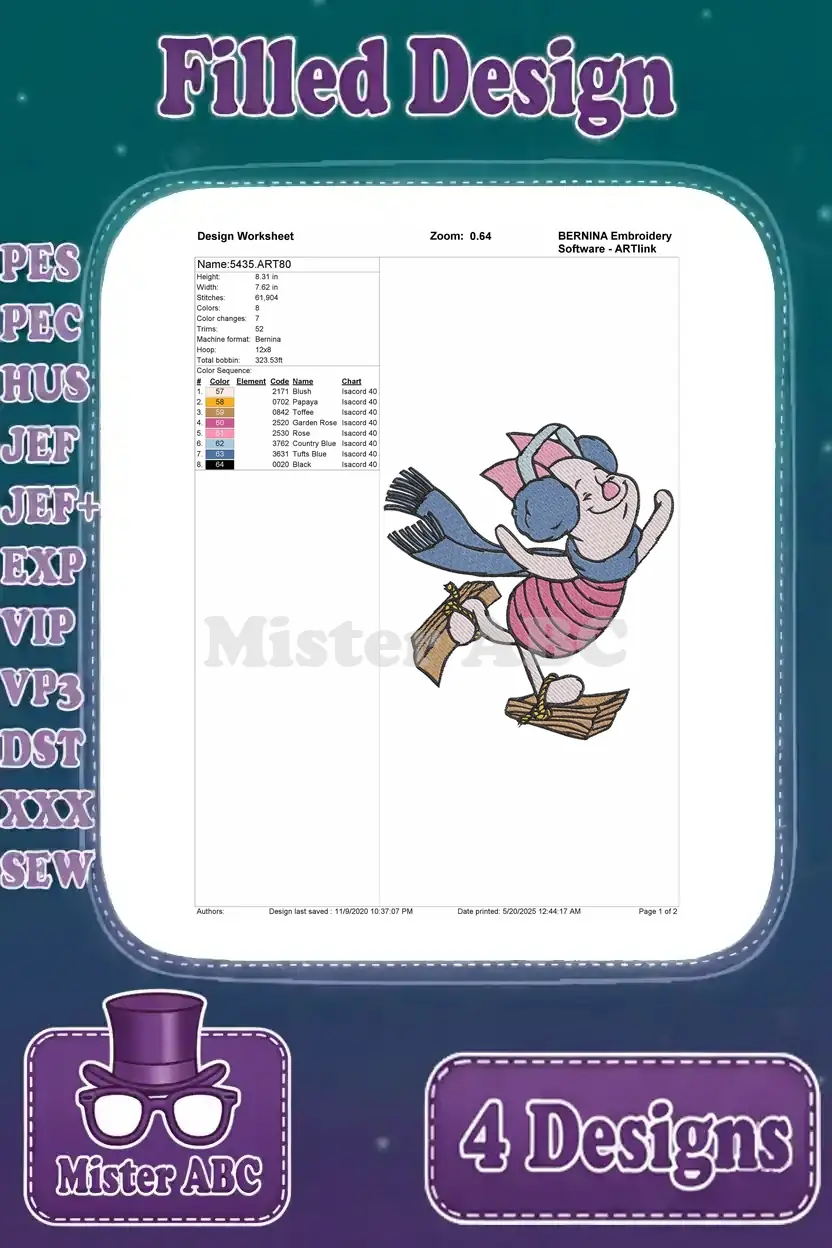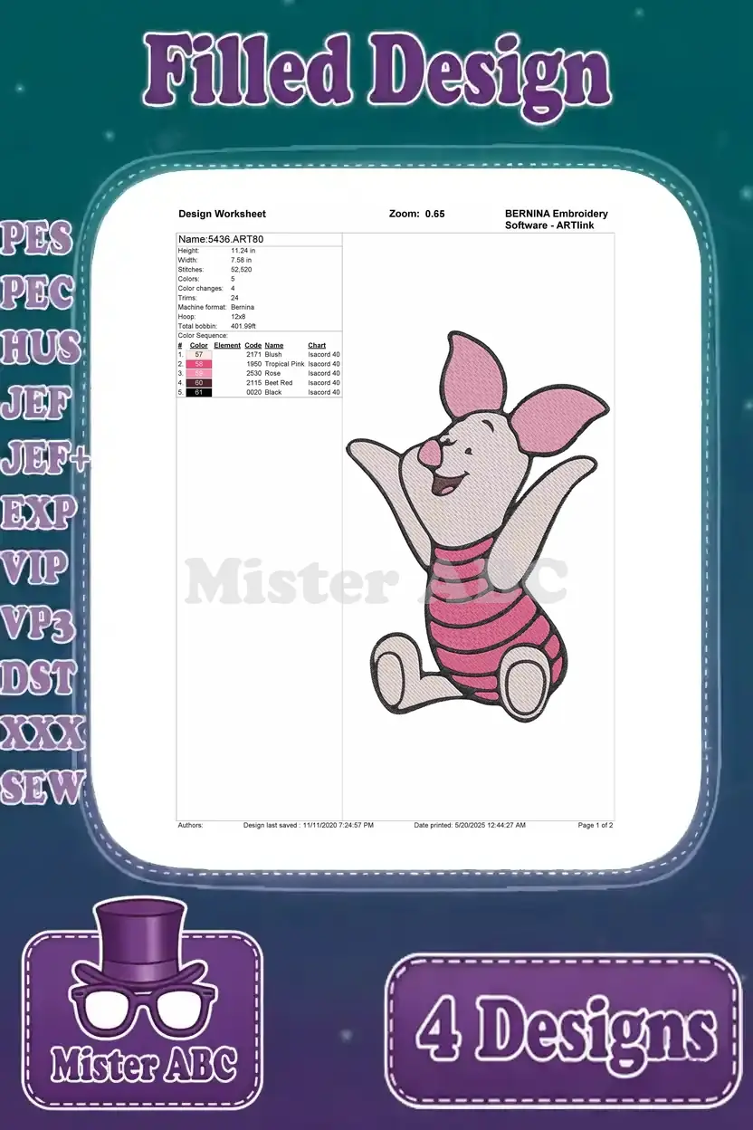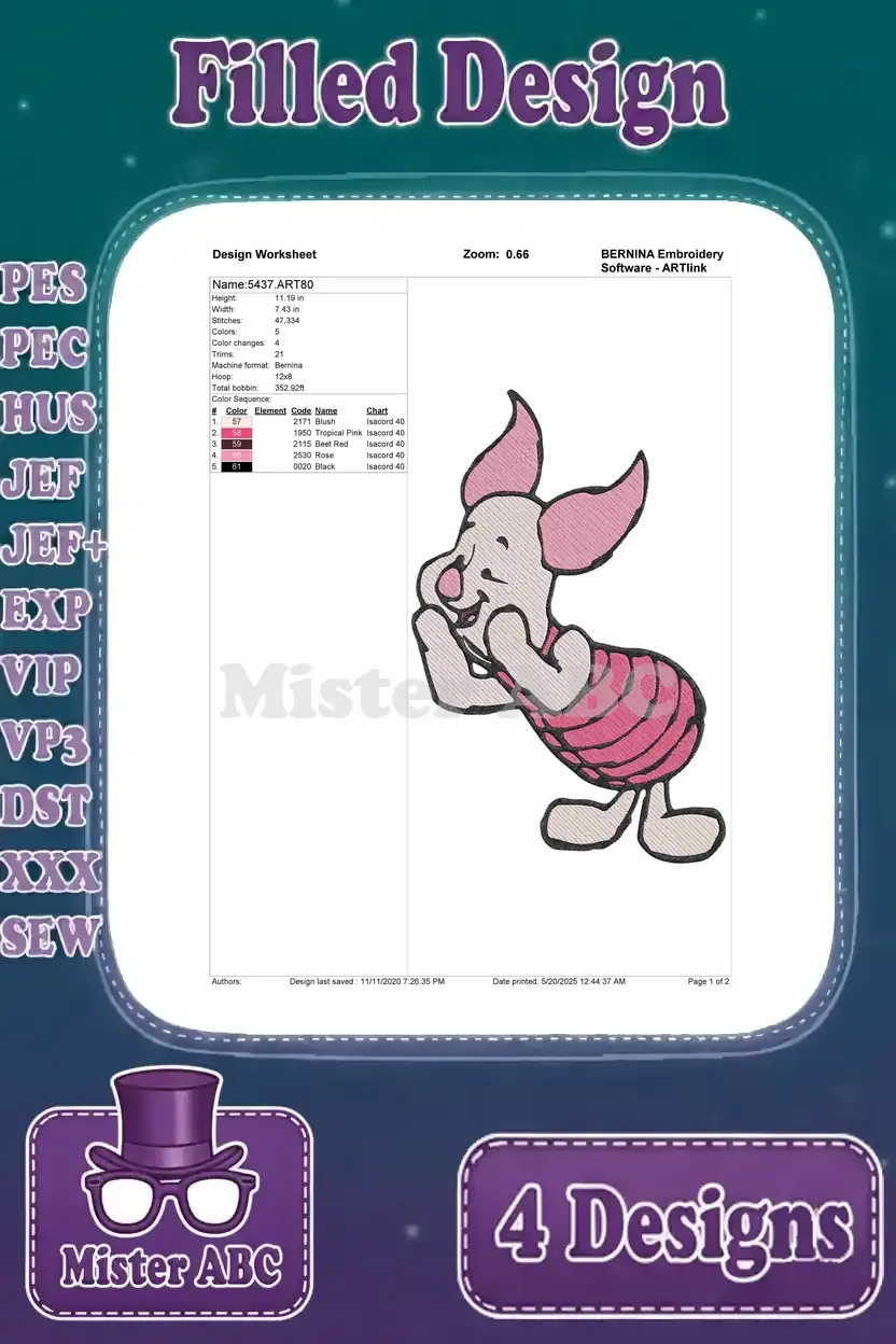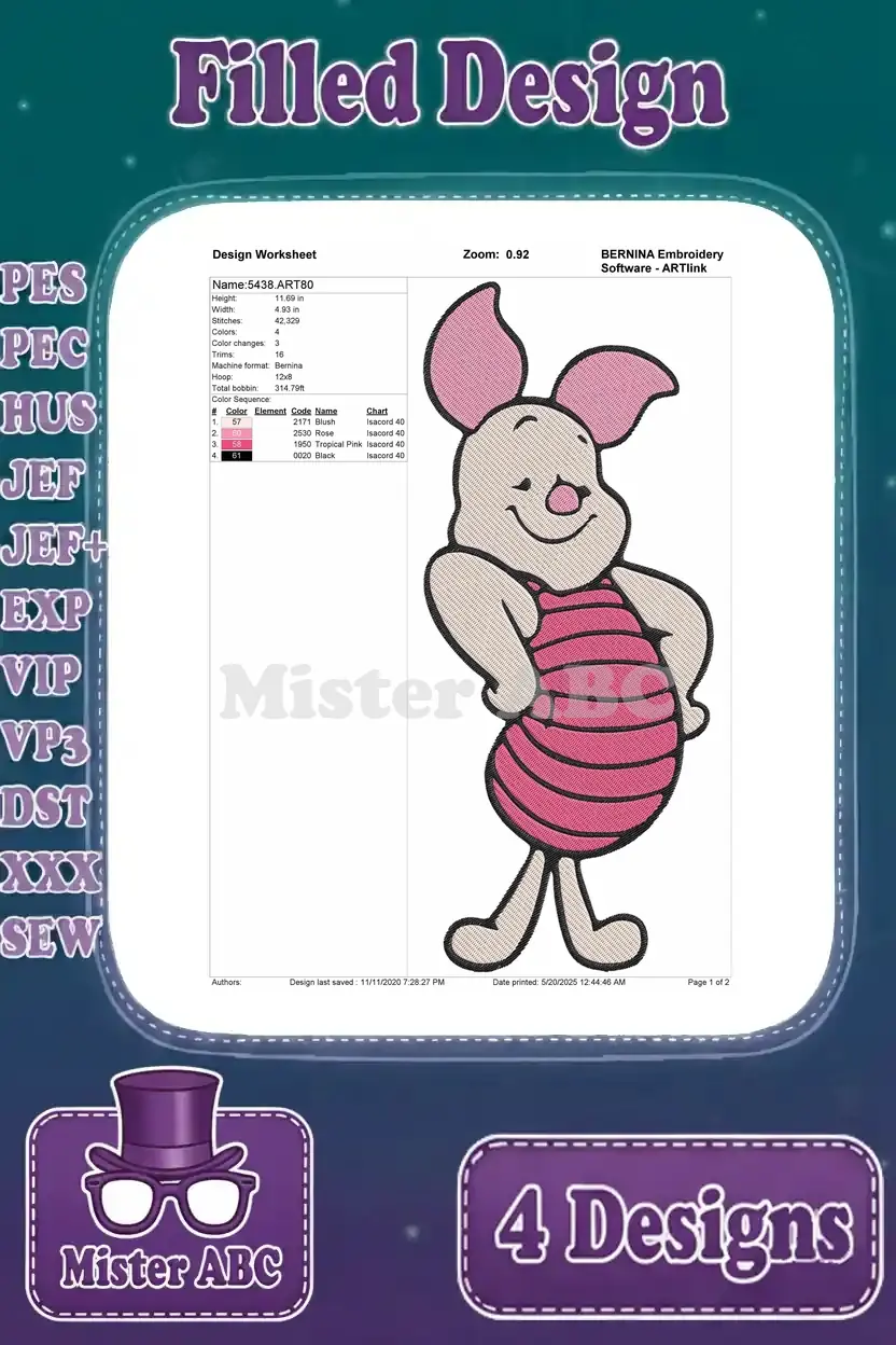 Winnie The Pooh – Piglet And Bluebird Sweet Friendship – Happy Thoughtful And Curious Poses – Hundred Acre Wood Sweet – Filled Embroidery Design