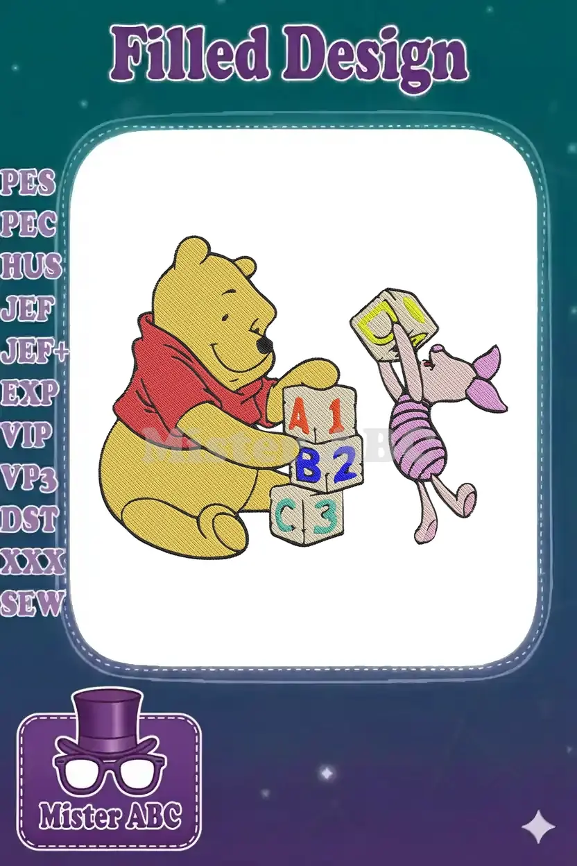 Winnie the Pooh and Piglet educational alphabet blocks embroidery designs