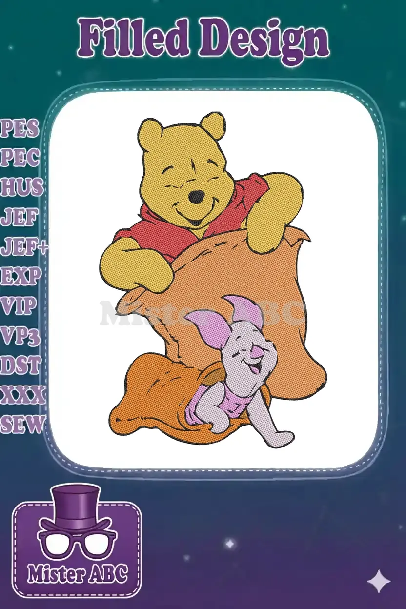 Winnie the Pooh and Piglet friends playing in bags embroidery designs