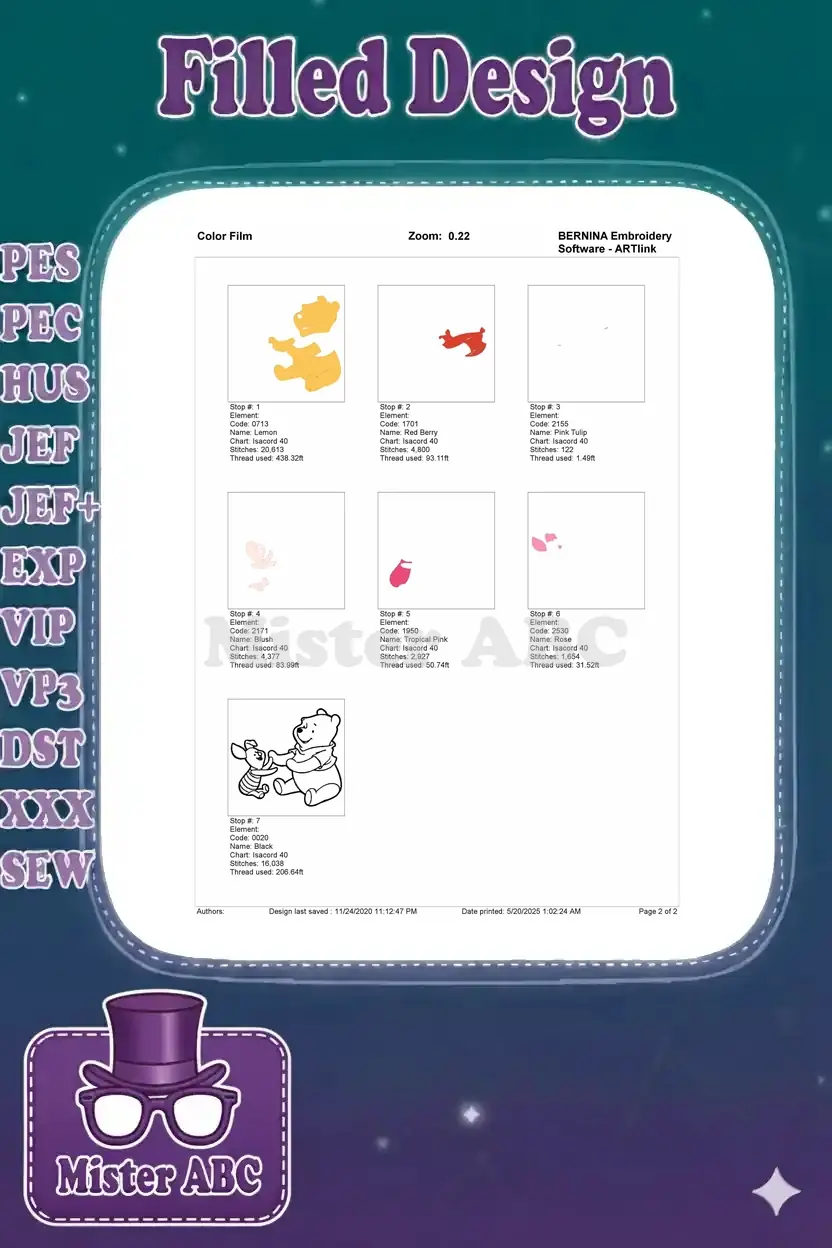 | Stitches | Colors | Thread Changes |