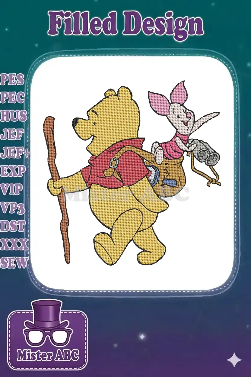 Winnie the Pooh and Piglet hiking adventure with binoculars embroidery designs