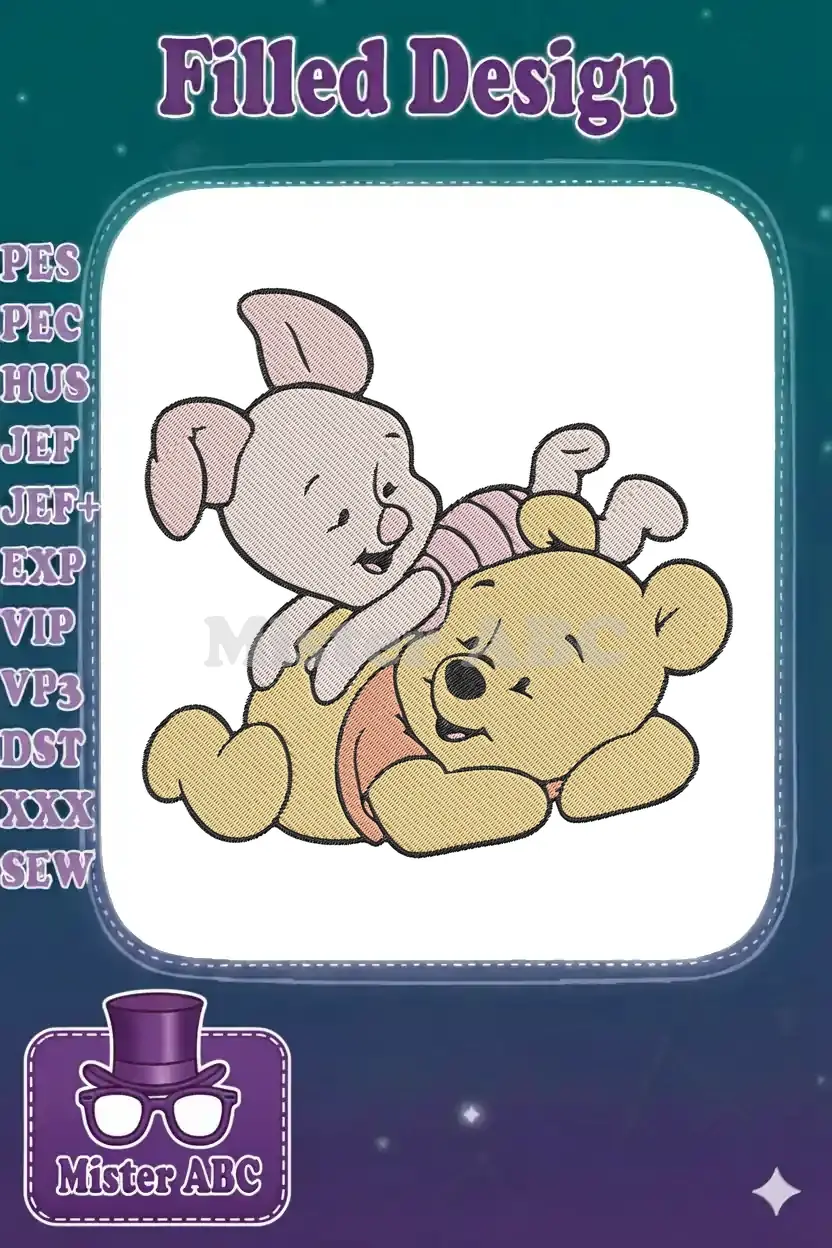 Winnie the Pooh and Piglet hugging friends embroidery designs