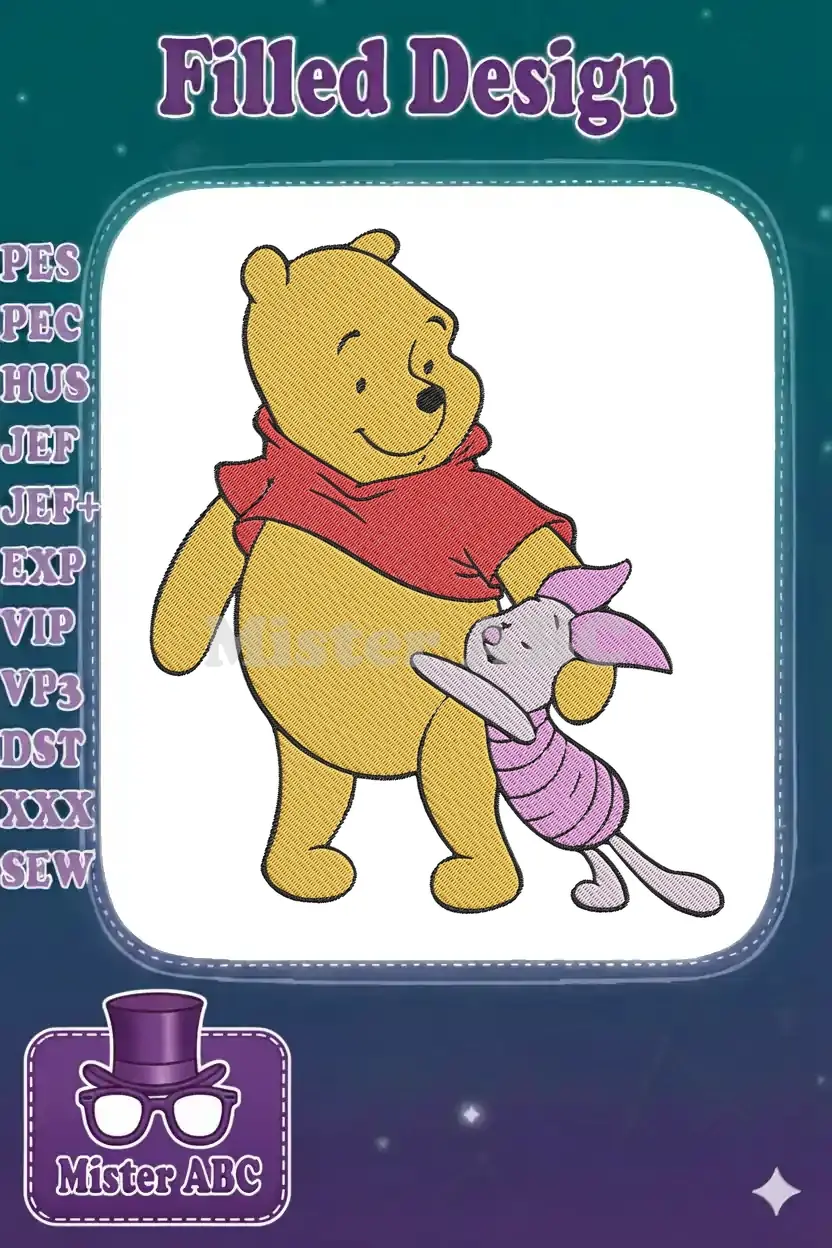 Winnie the Pooh and Piglet hugging friendship embroidery designs