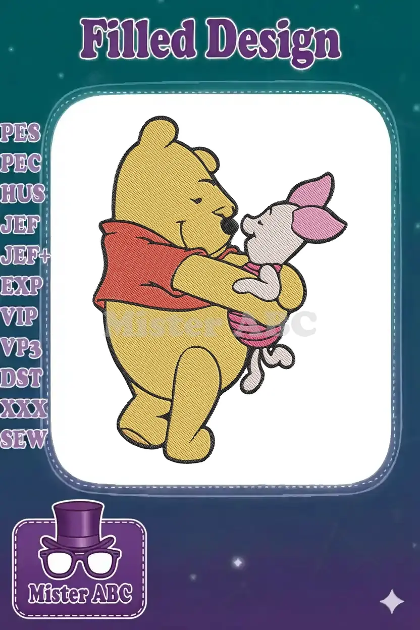 Winnie the Pooh and Piglet Hugging Happy Friendship Embroidery Designs