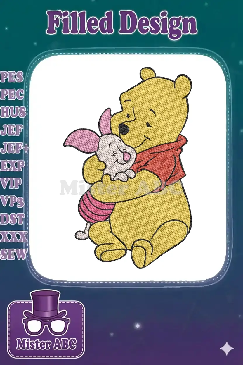 Winnie the Pooh and Piglet Hugging Friends Embroidery Designs