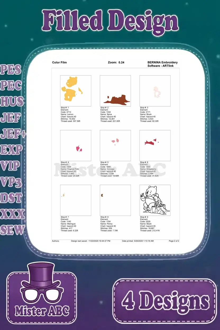 | Stitches | Colors | Thread Changes |