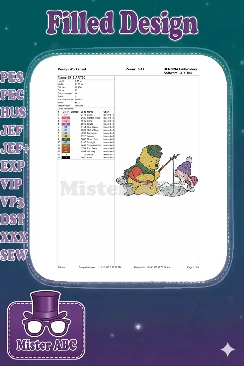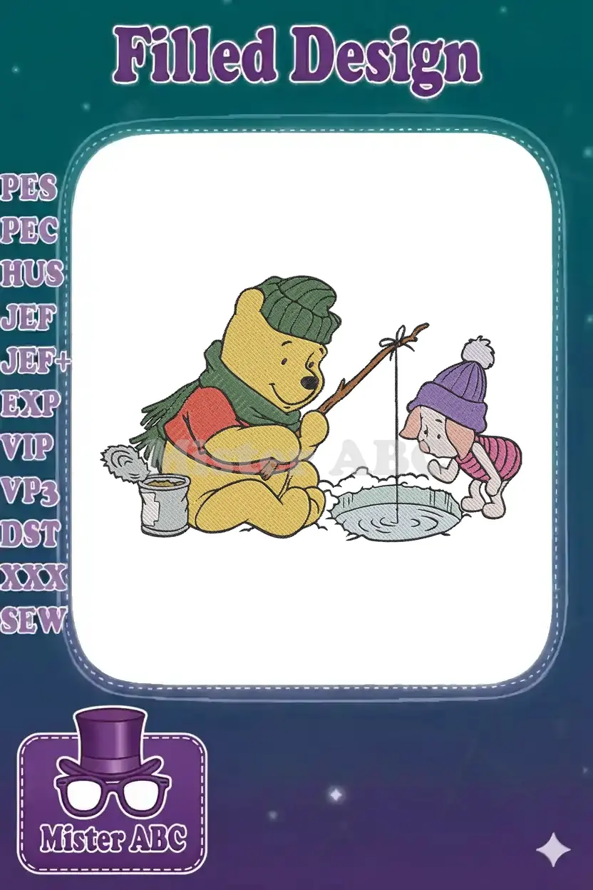 Winnie the Pooh and Piglet Ice Fishing Winter Embroidery Designs