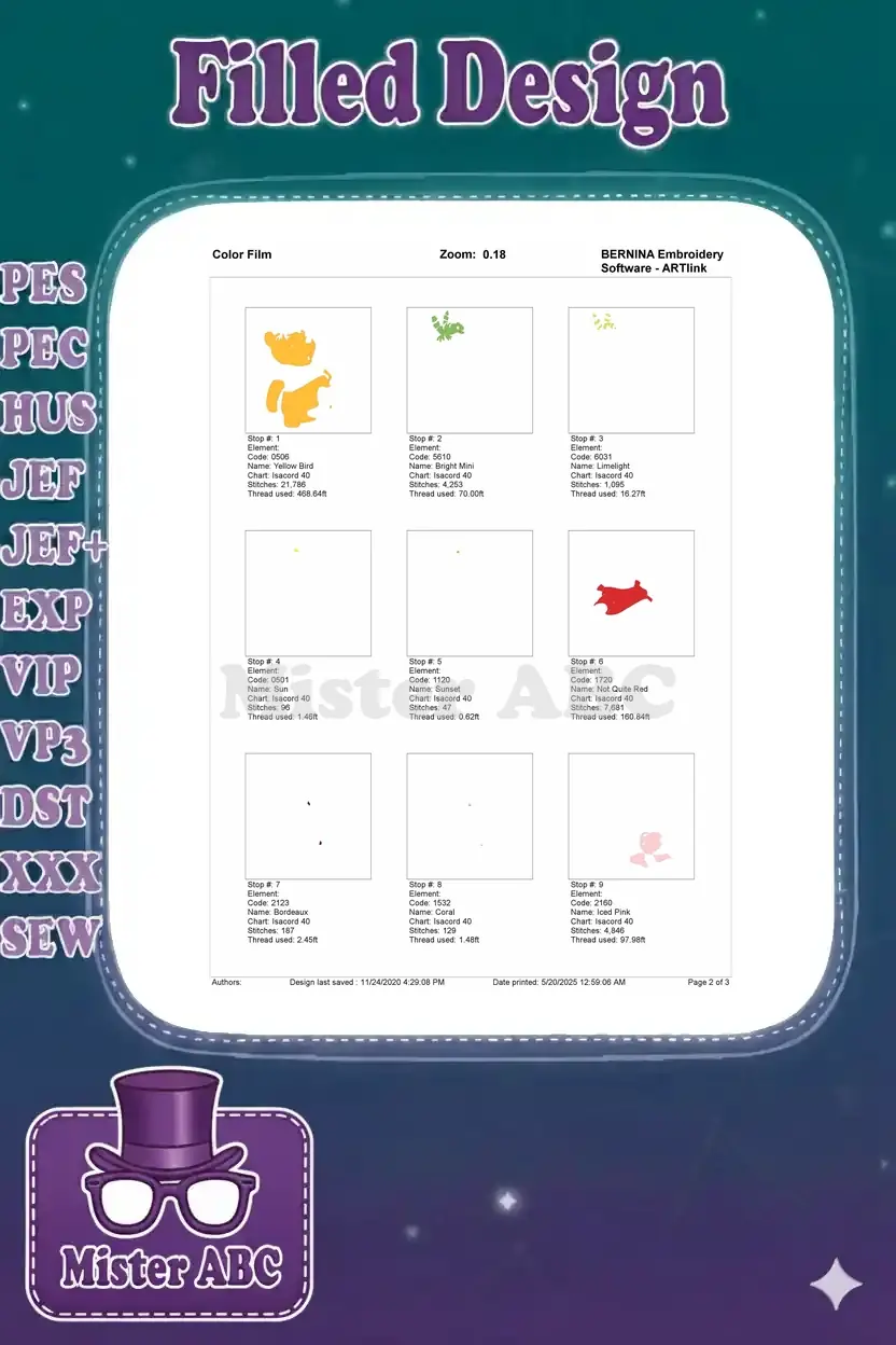 | Stitches | Colors | Thread Changes |