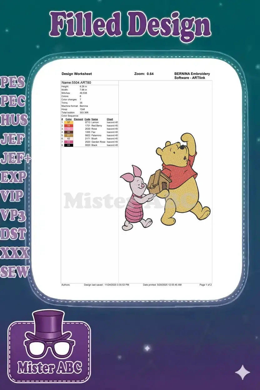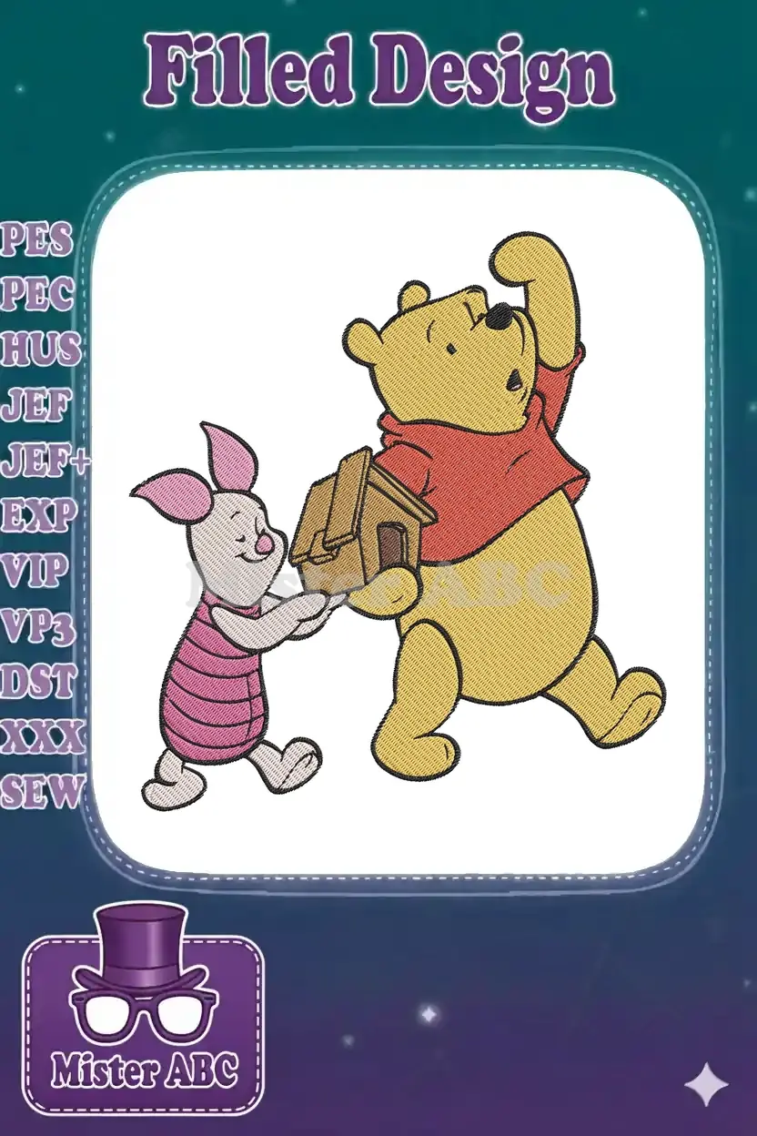 Winnie the Pooh and Piglet Moving Small House Embroidery Designs