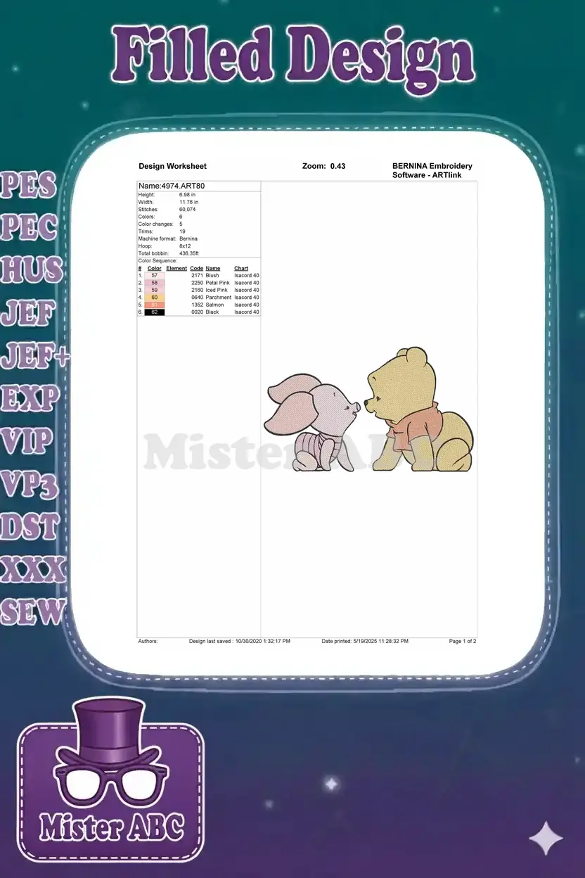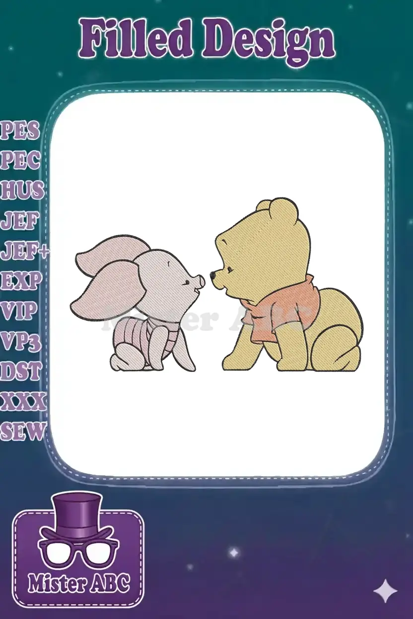 Winnie the Pooh and Piglet nose-to-nose friendship embroidery designs