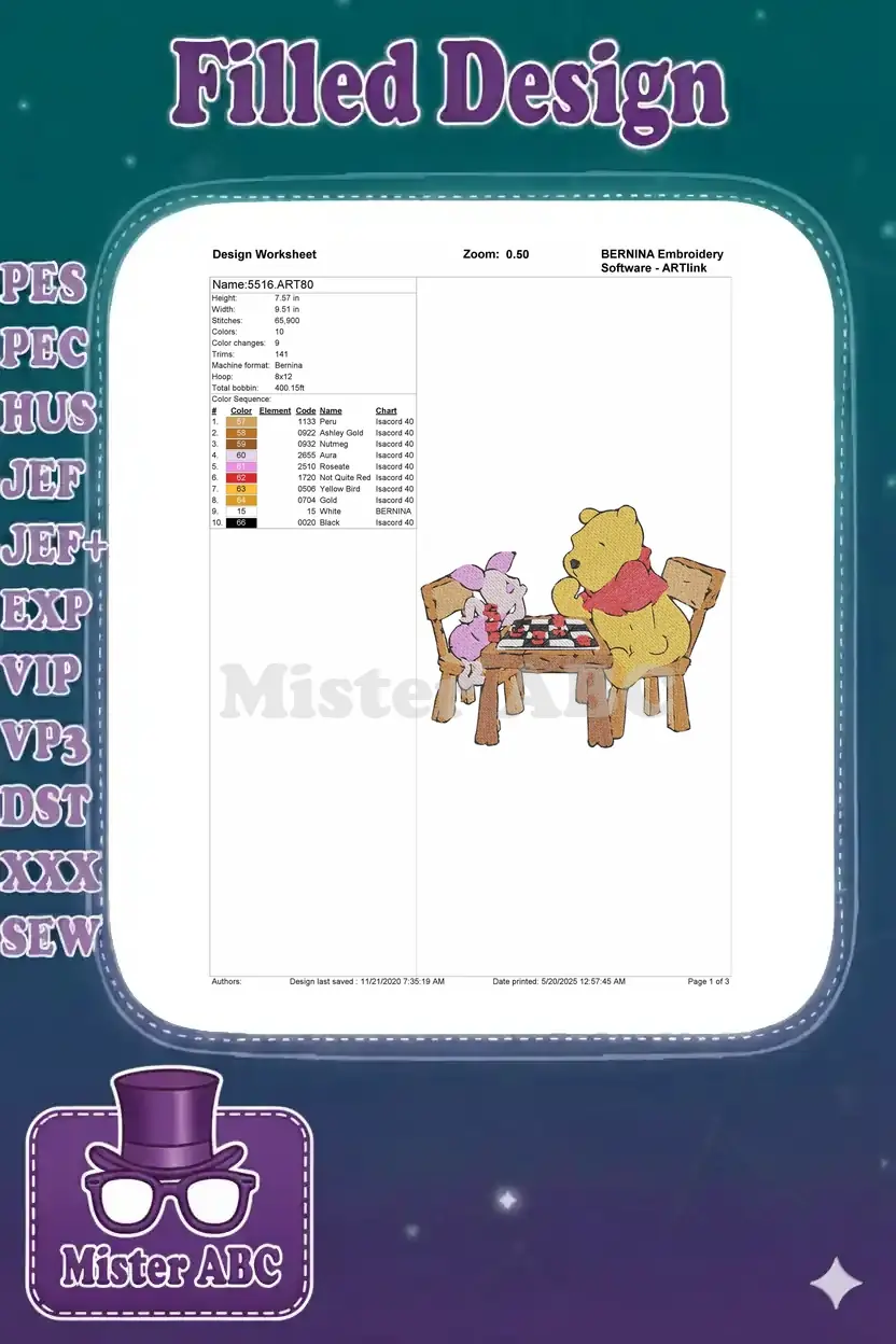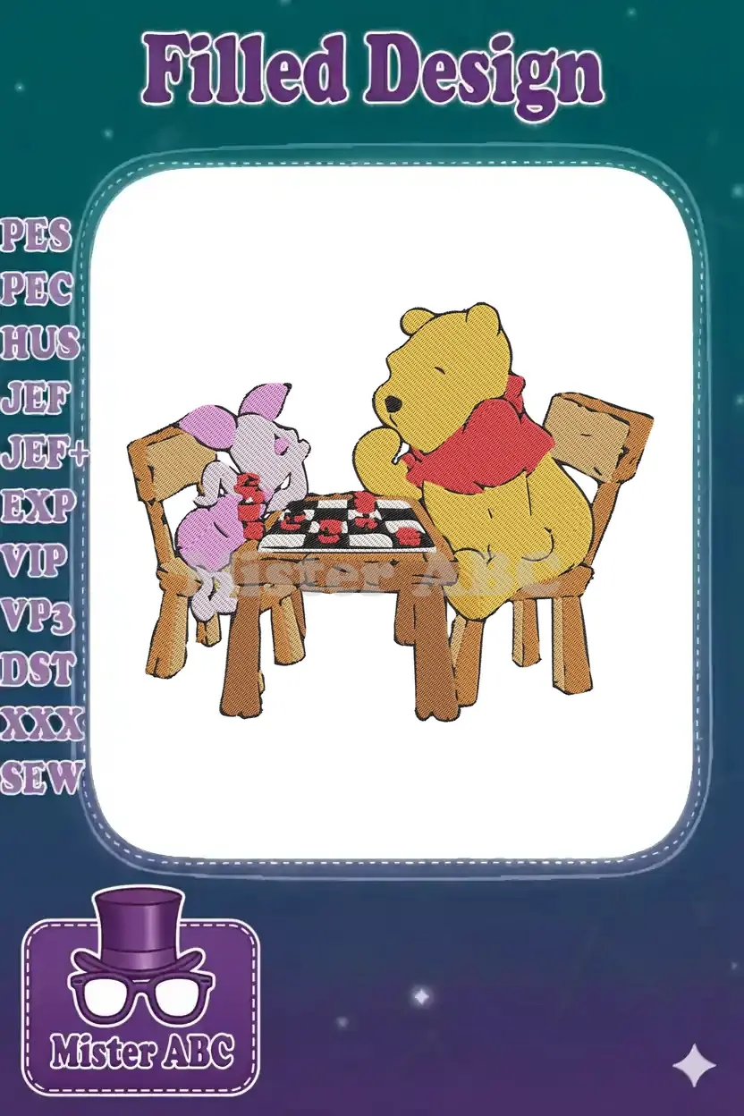Winnie Pooh and Piglet playing checkers embroidery designs