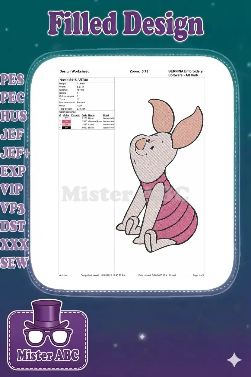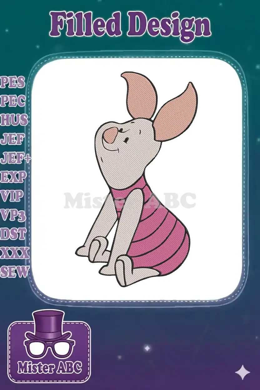 Winnie the Pooh Piglet Sitting Happy Cartoon Embroidery Designs