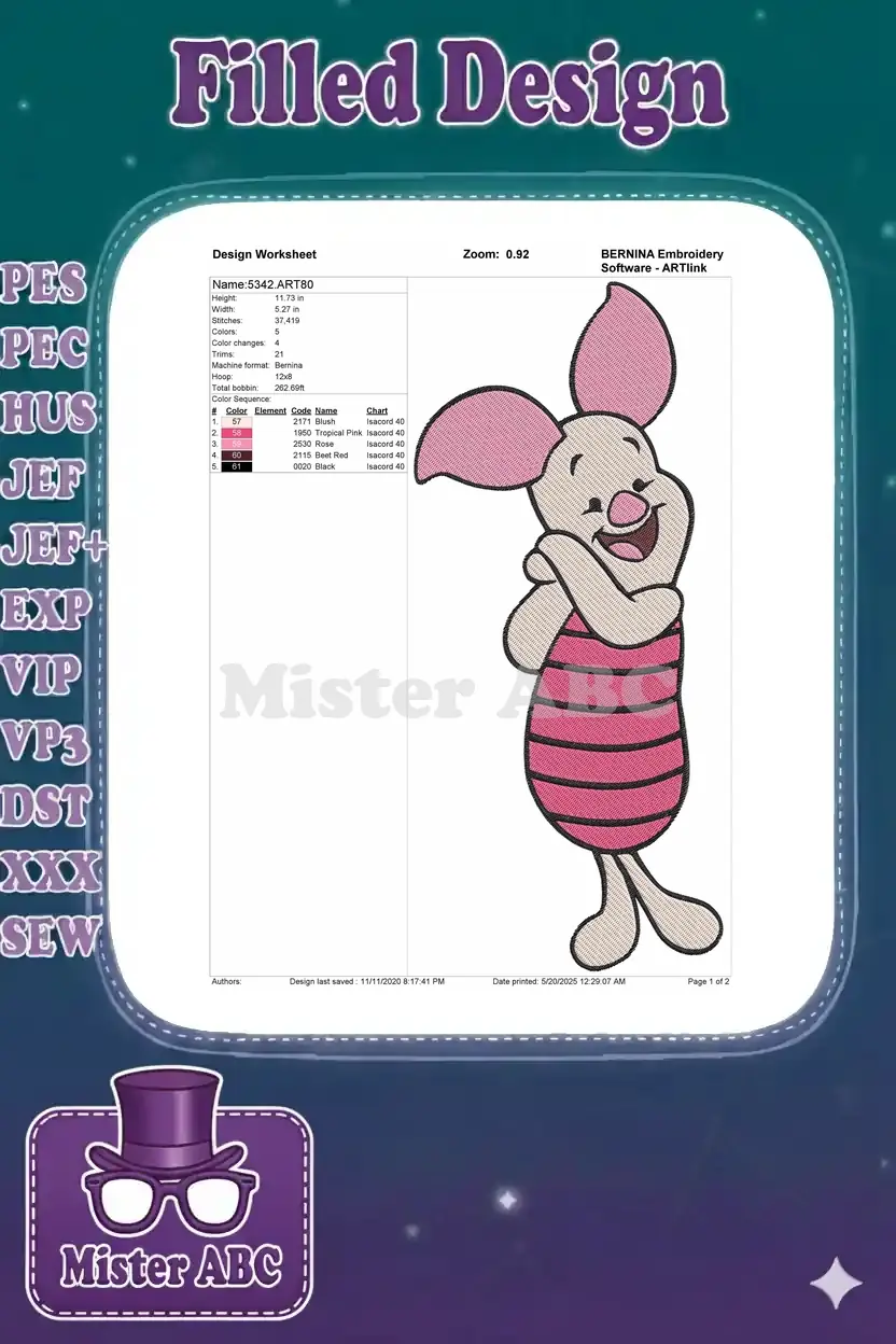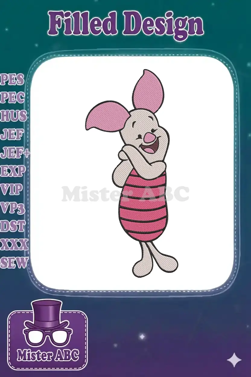 Winnie the Pooh Piglet Smiling Pink Striped Shirt Embroidery Designs