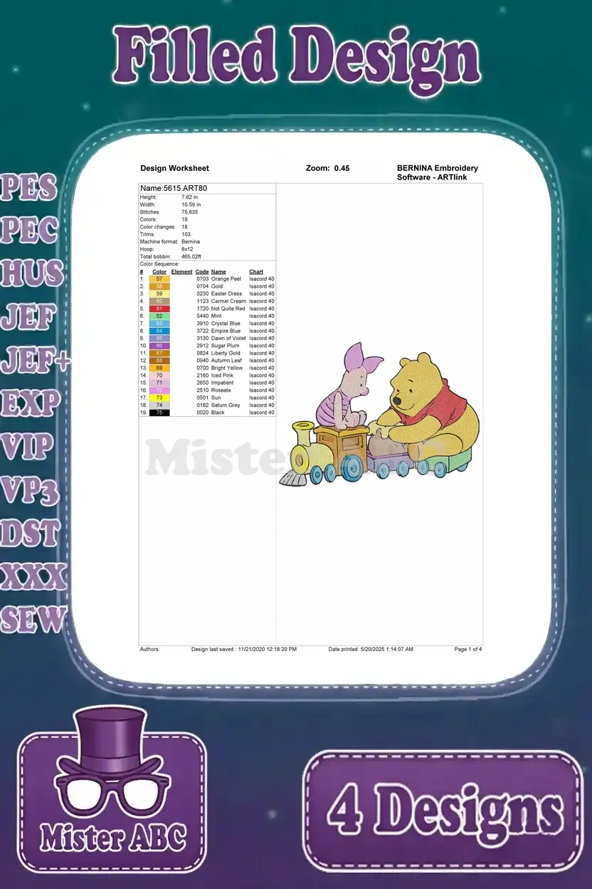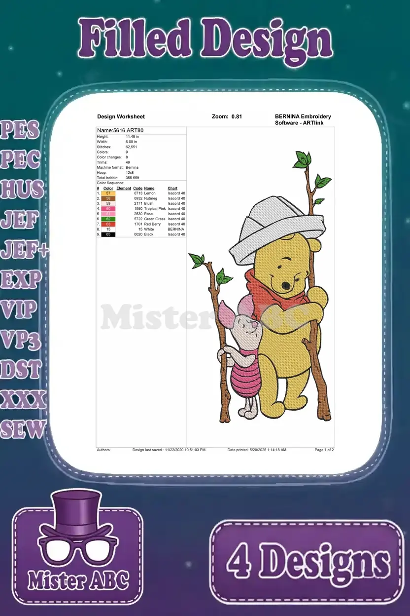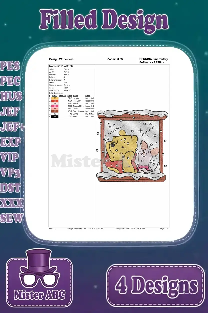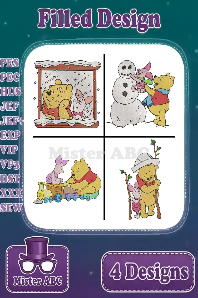 Winnie The Pooh And Piglet Snow Globe Toy Train Building Snowman Hiking – Filled Embroidery Design