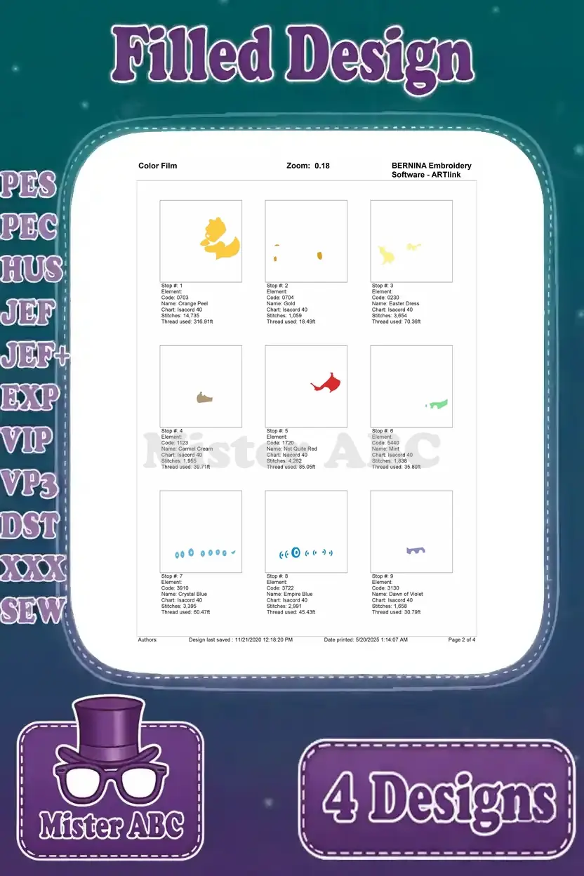 | Stitches | Colors | Thread Changes |