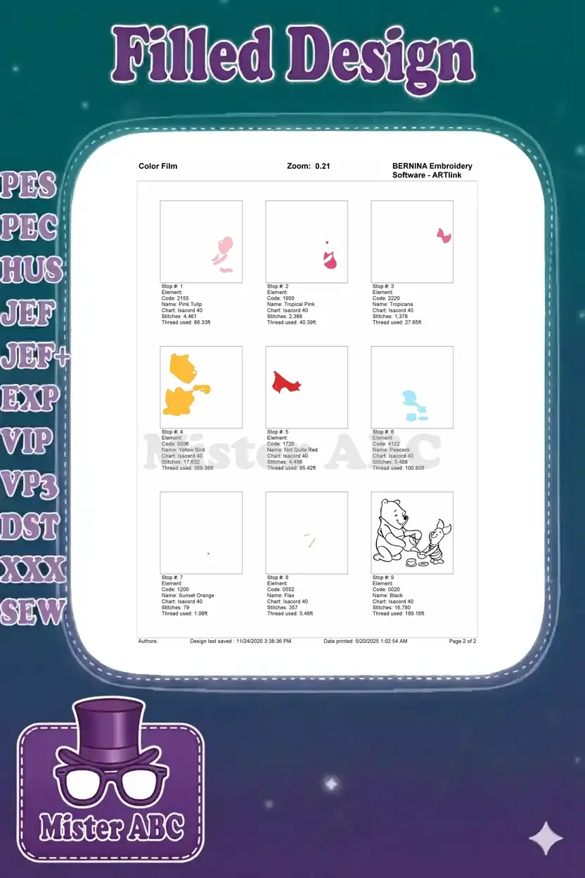 | Stitches | Colors | Thread Changes |