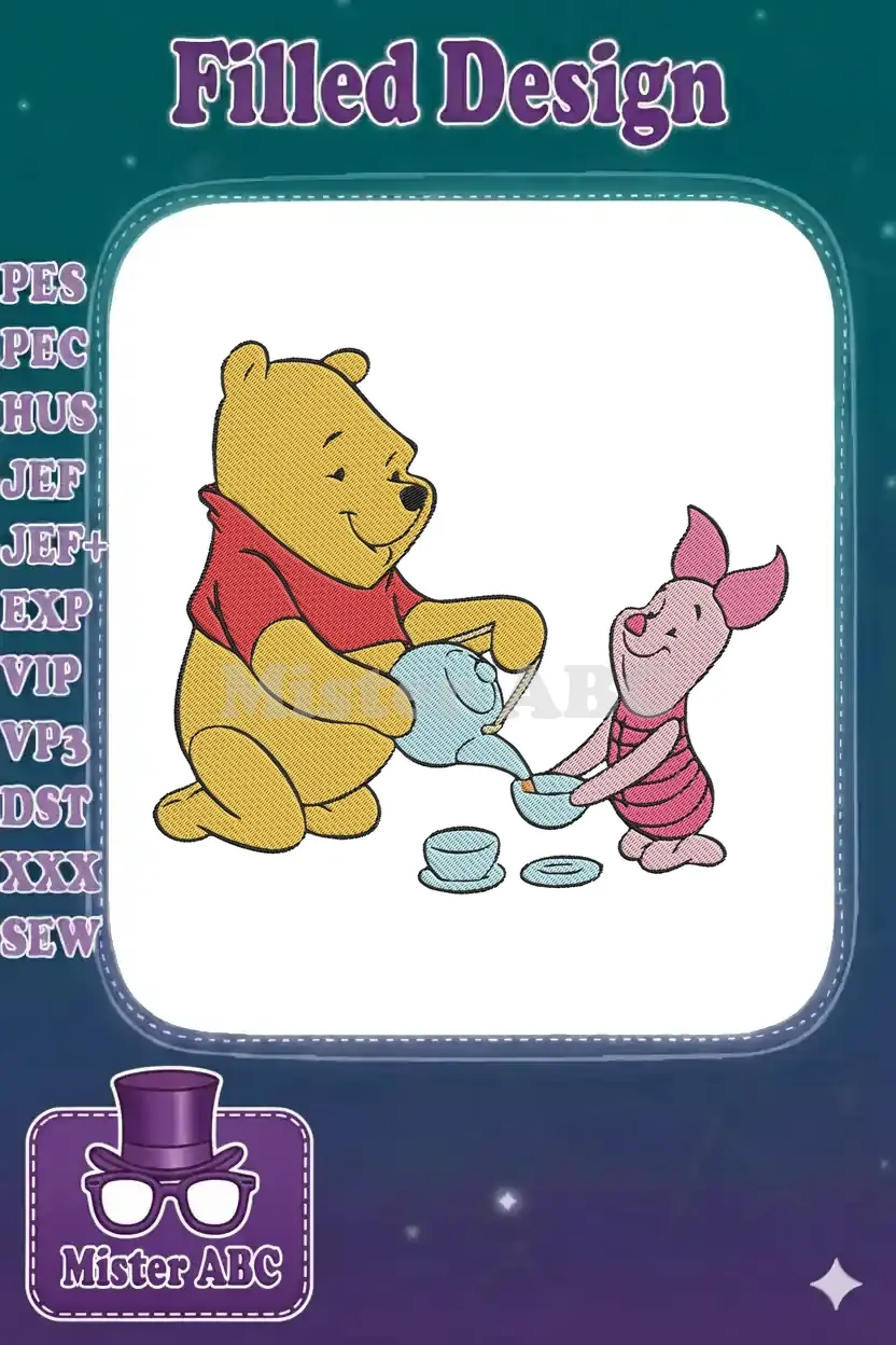 Winnie the Pooh and Piglet tea party embroidery designs