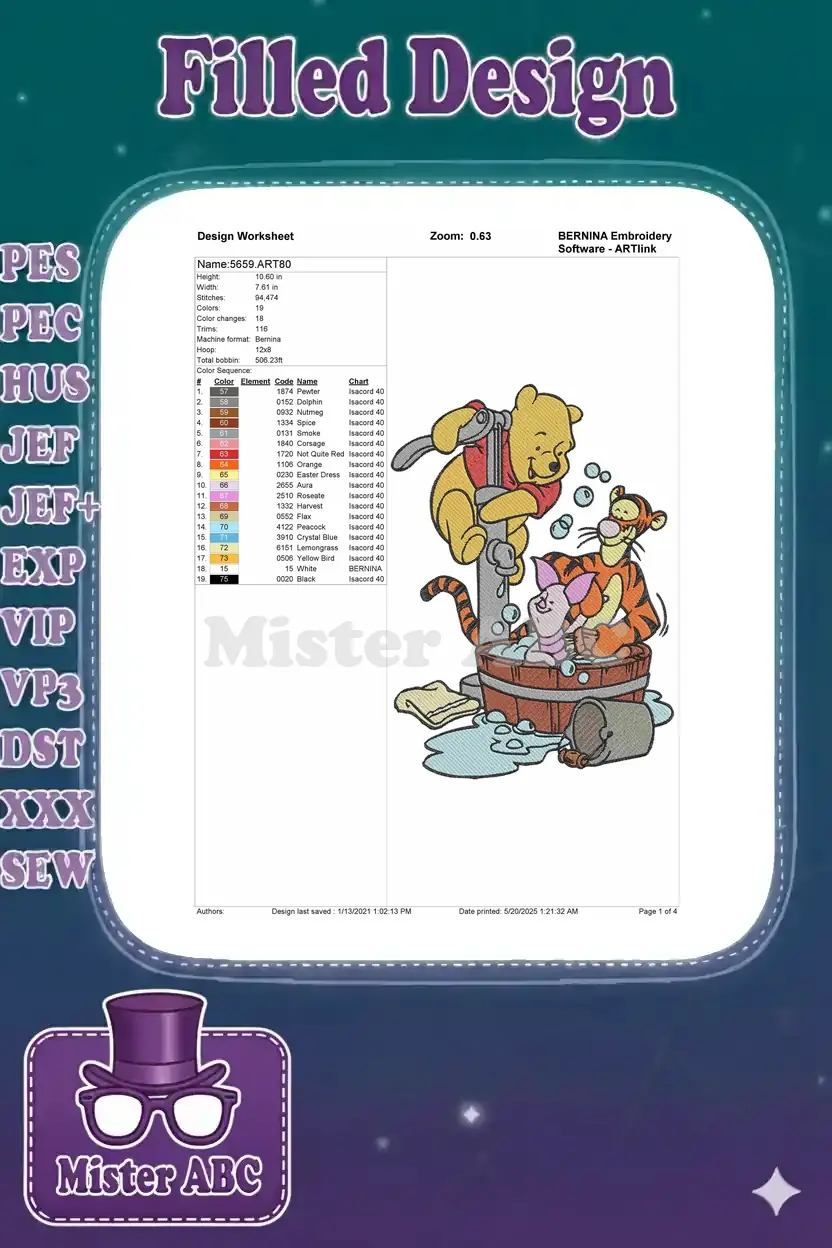 Winnie the Pooh Piglet Tigger bubble bath time embroidery designs