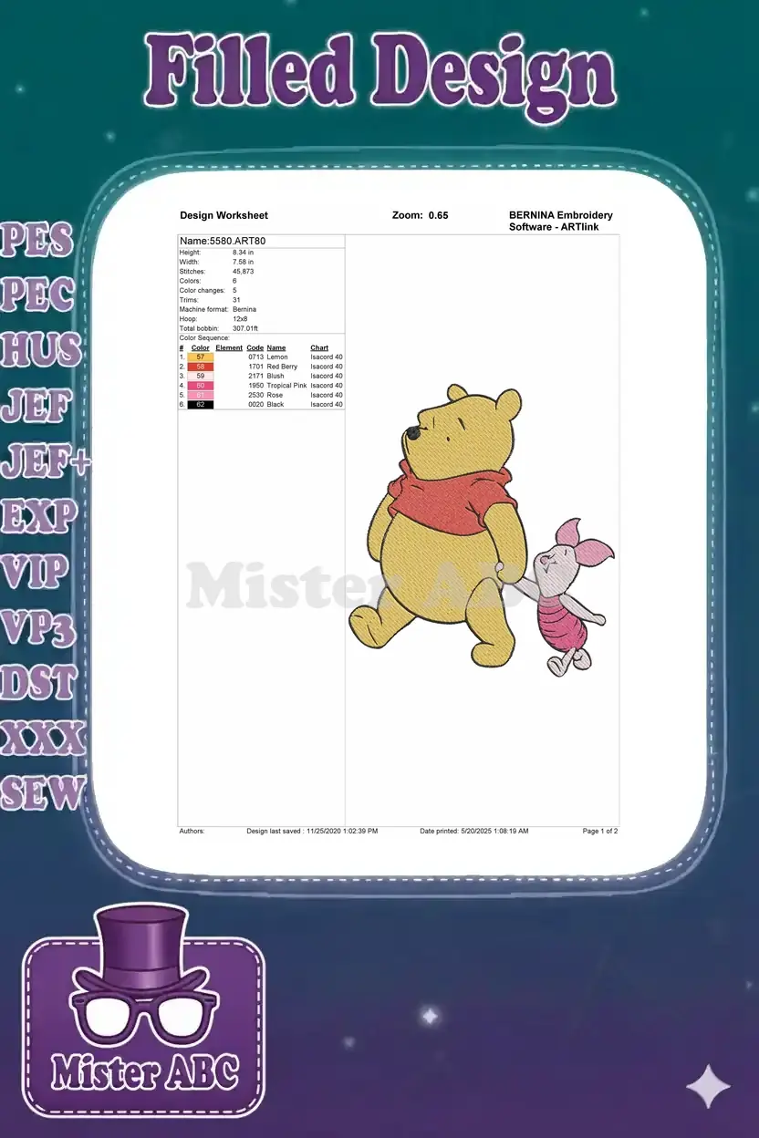 Winnie the Pooh and Piglet Walking Together Friends Embroidery Designs