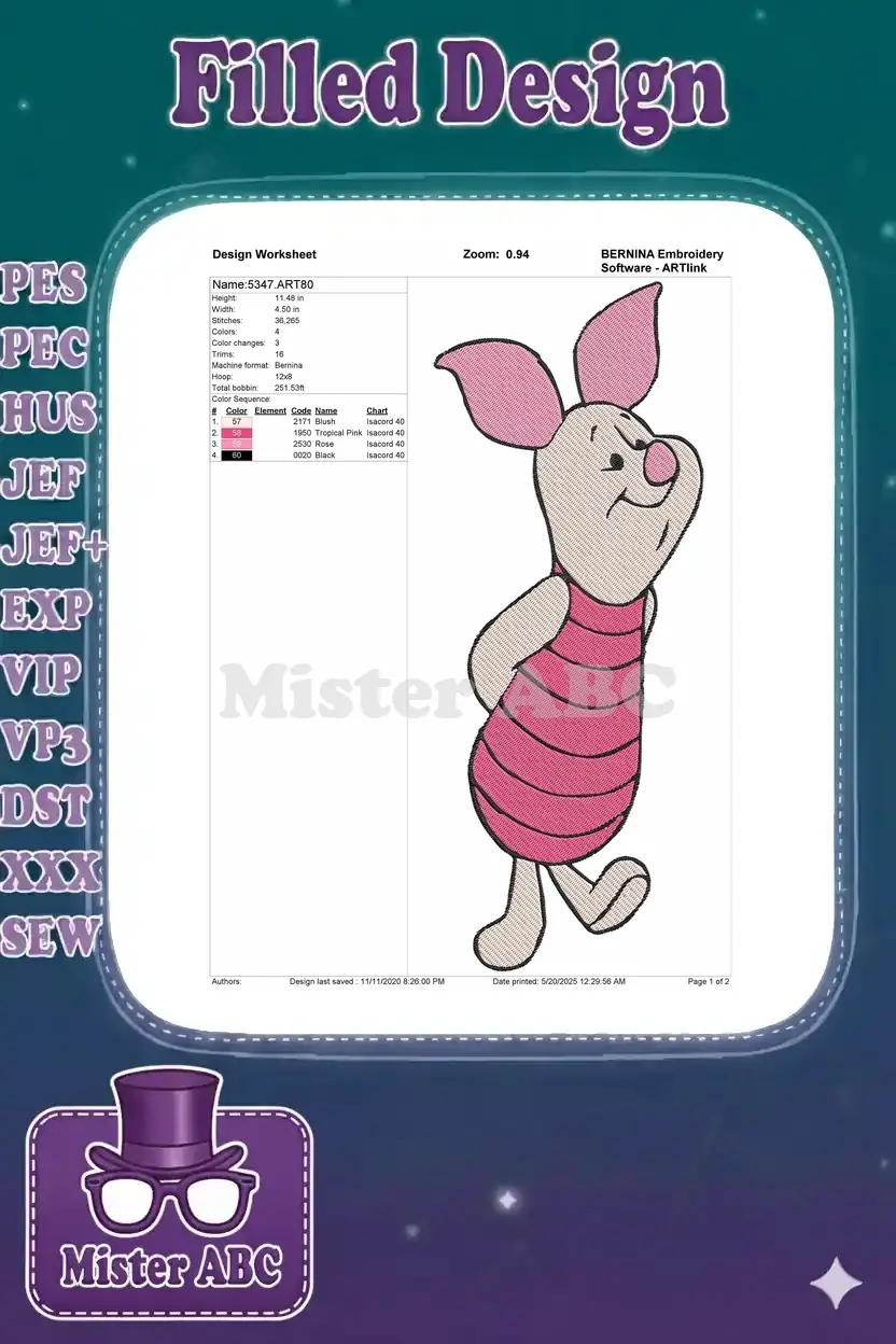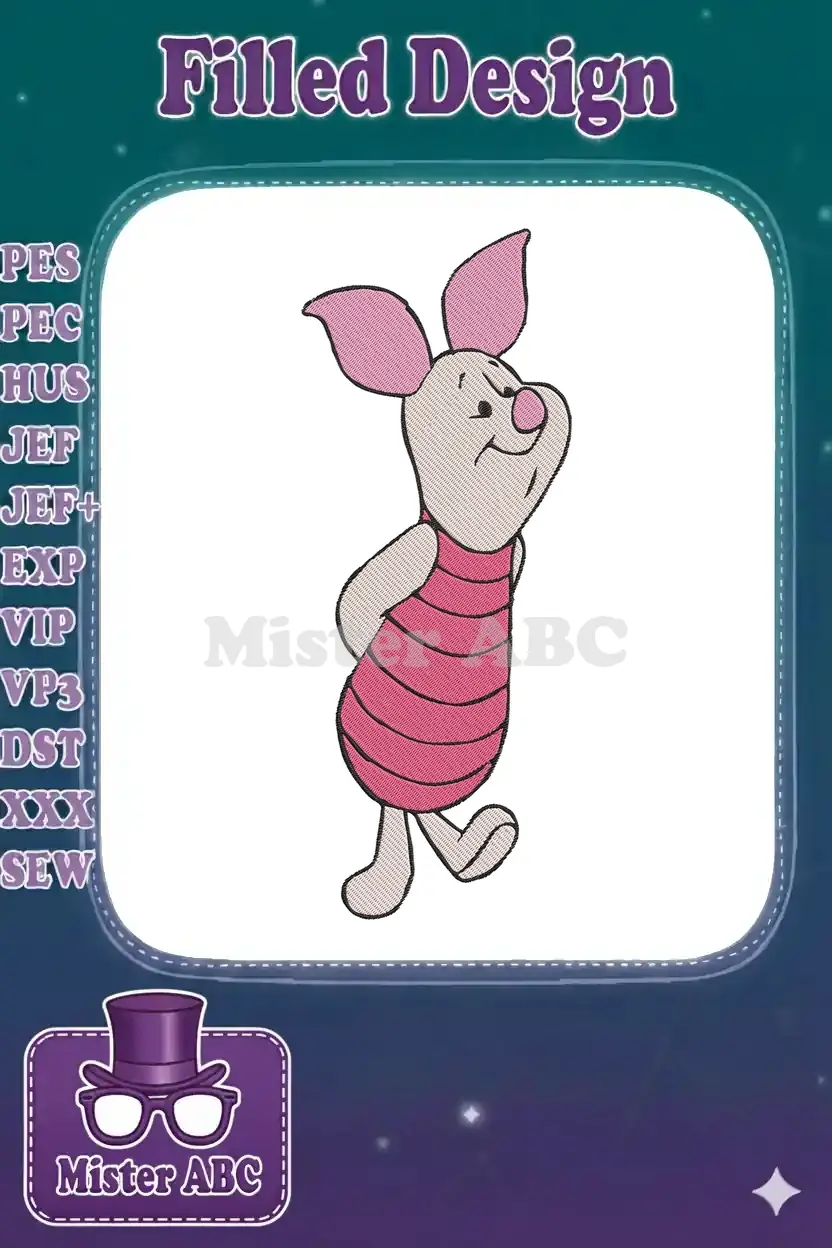Winnie the Pooh Piglet Wearing Pink Striped Shirt Embroidery Designs