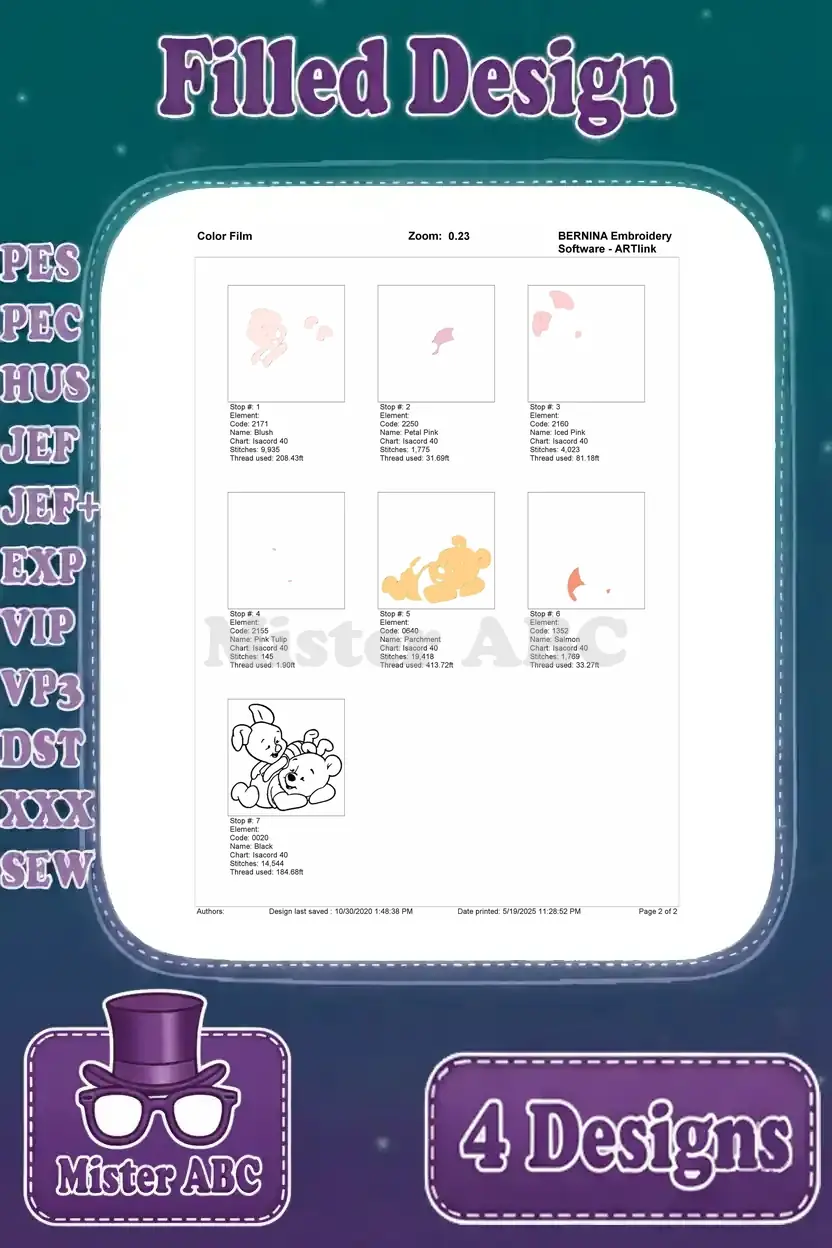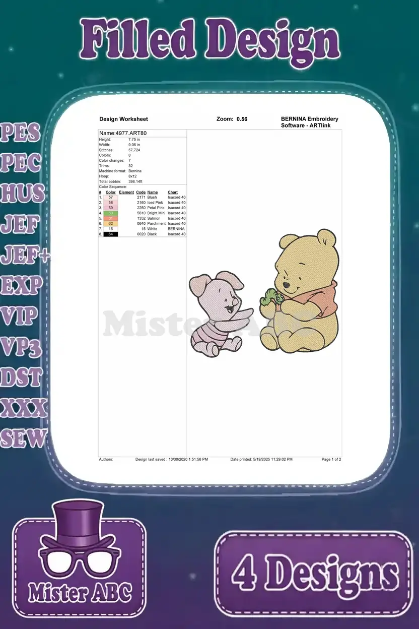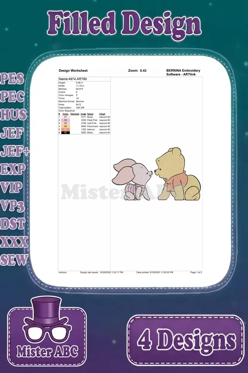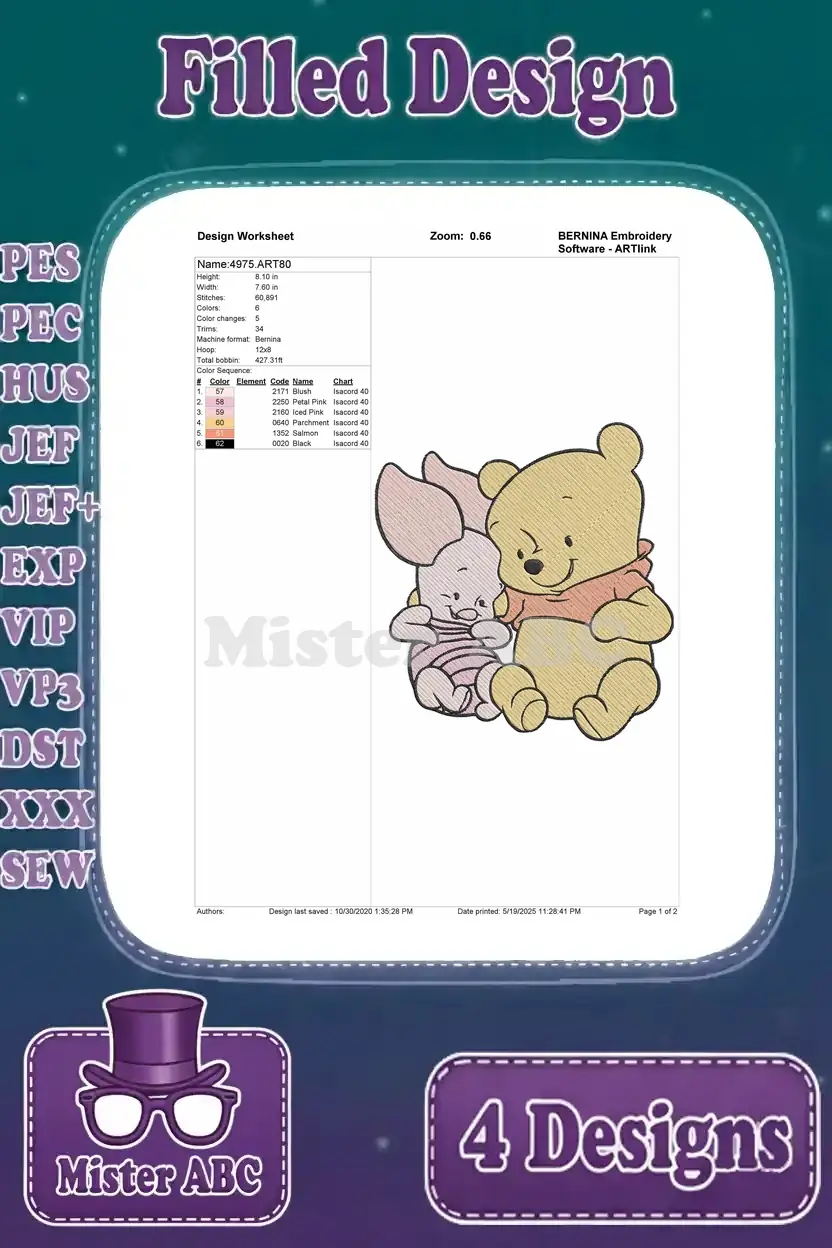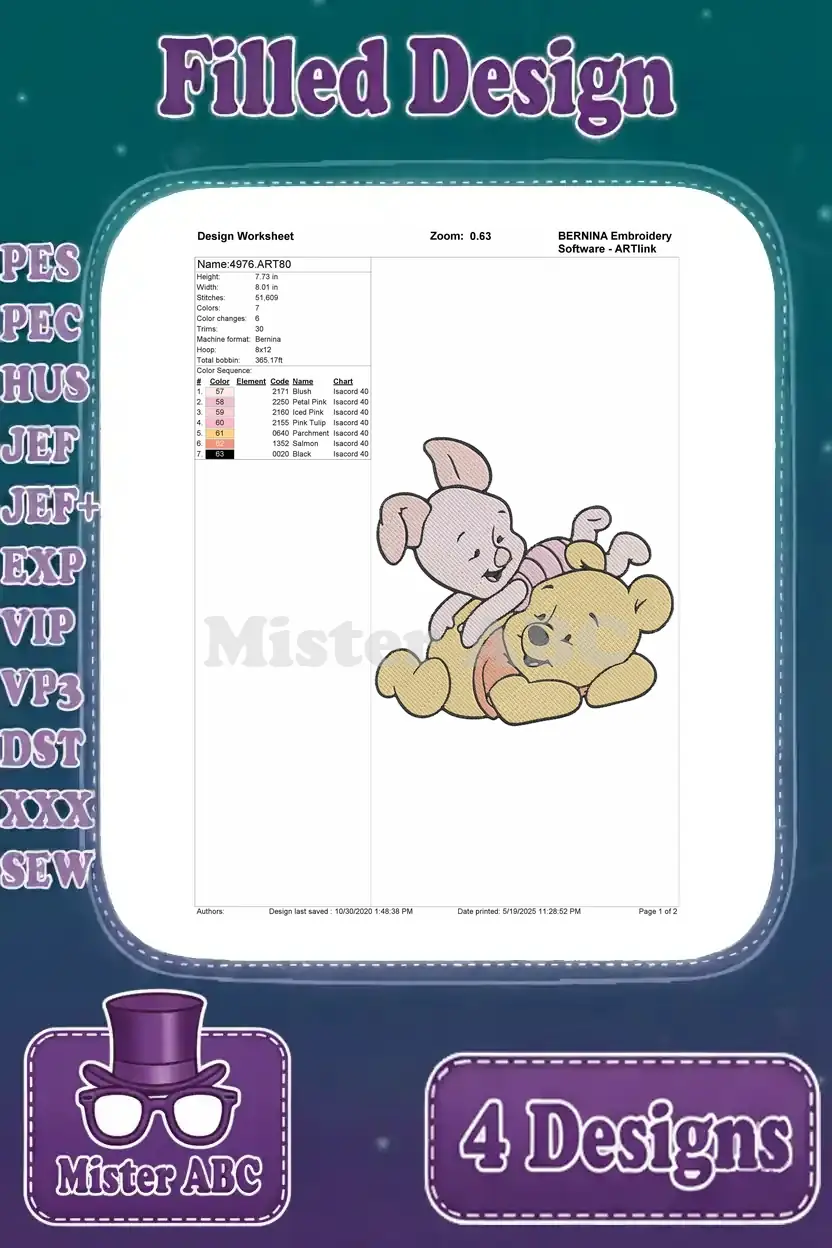 Winnie The Pooh Piglet And Winnie The Pooh Bear Affectionate Hugging Scenes – Filled Embroidery Design