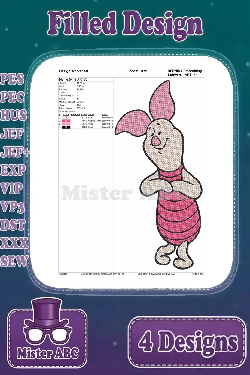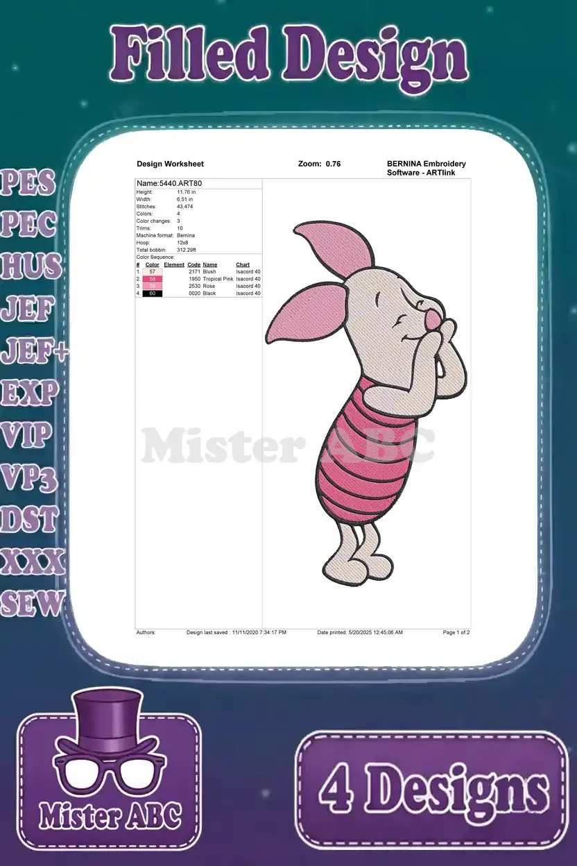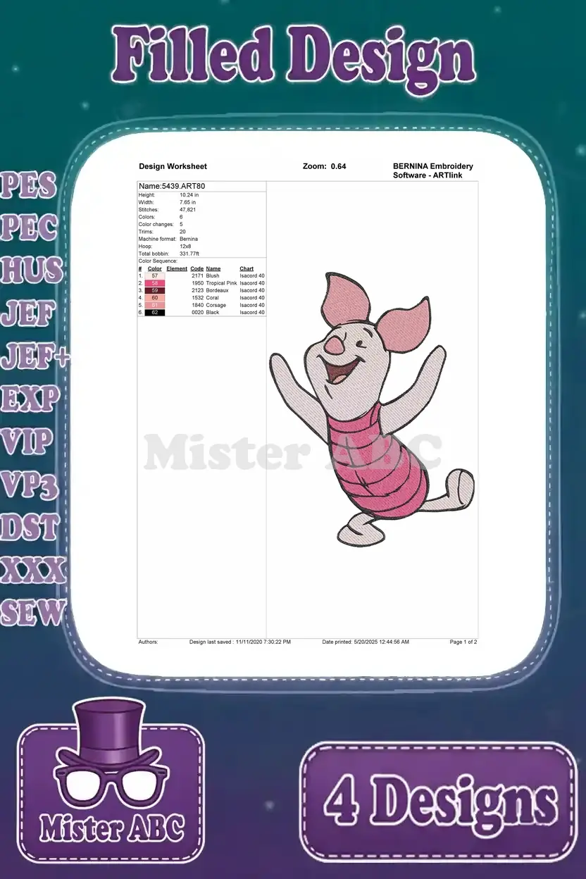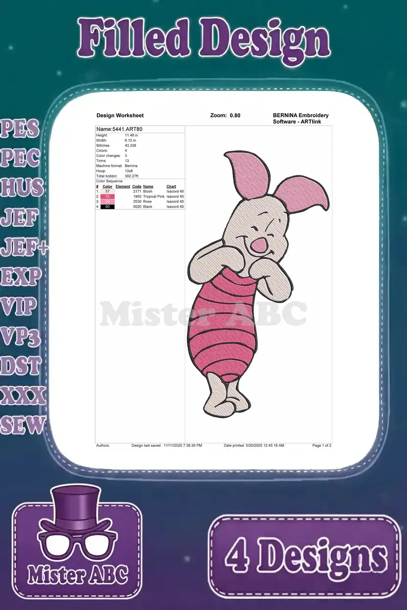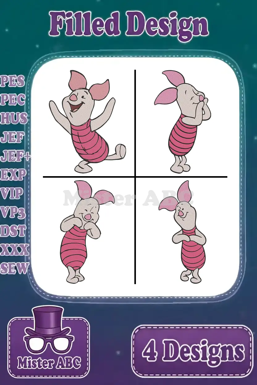 Winnie The Pooh – Piglet’S Emotional Spectrum Display – Happy Waving Shy Worried And Sad Poses – Hundred Acre Wood – Filled Embroidery Design
