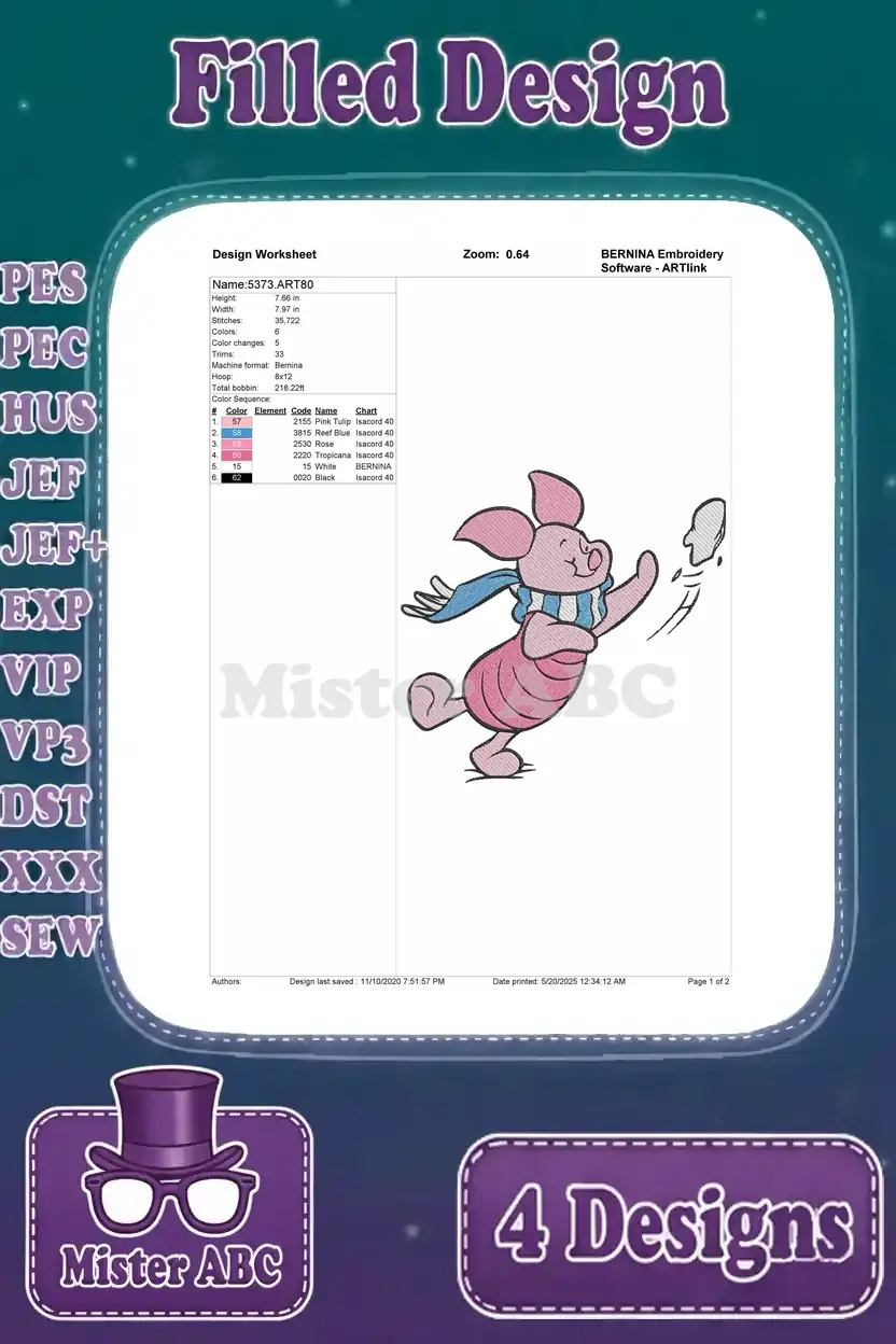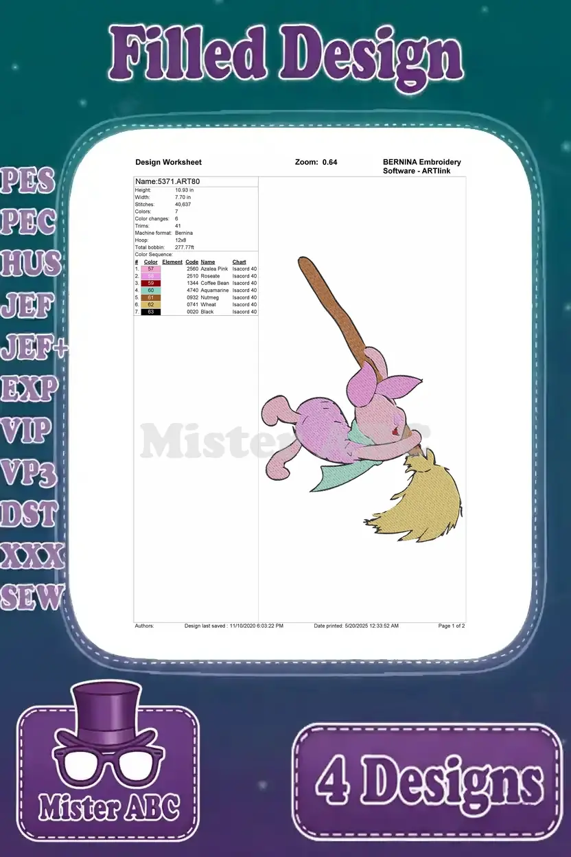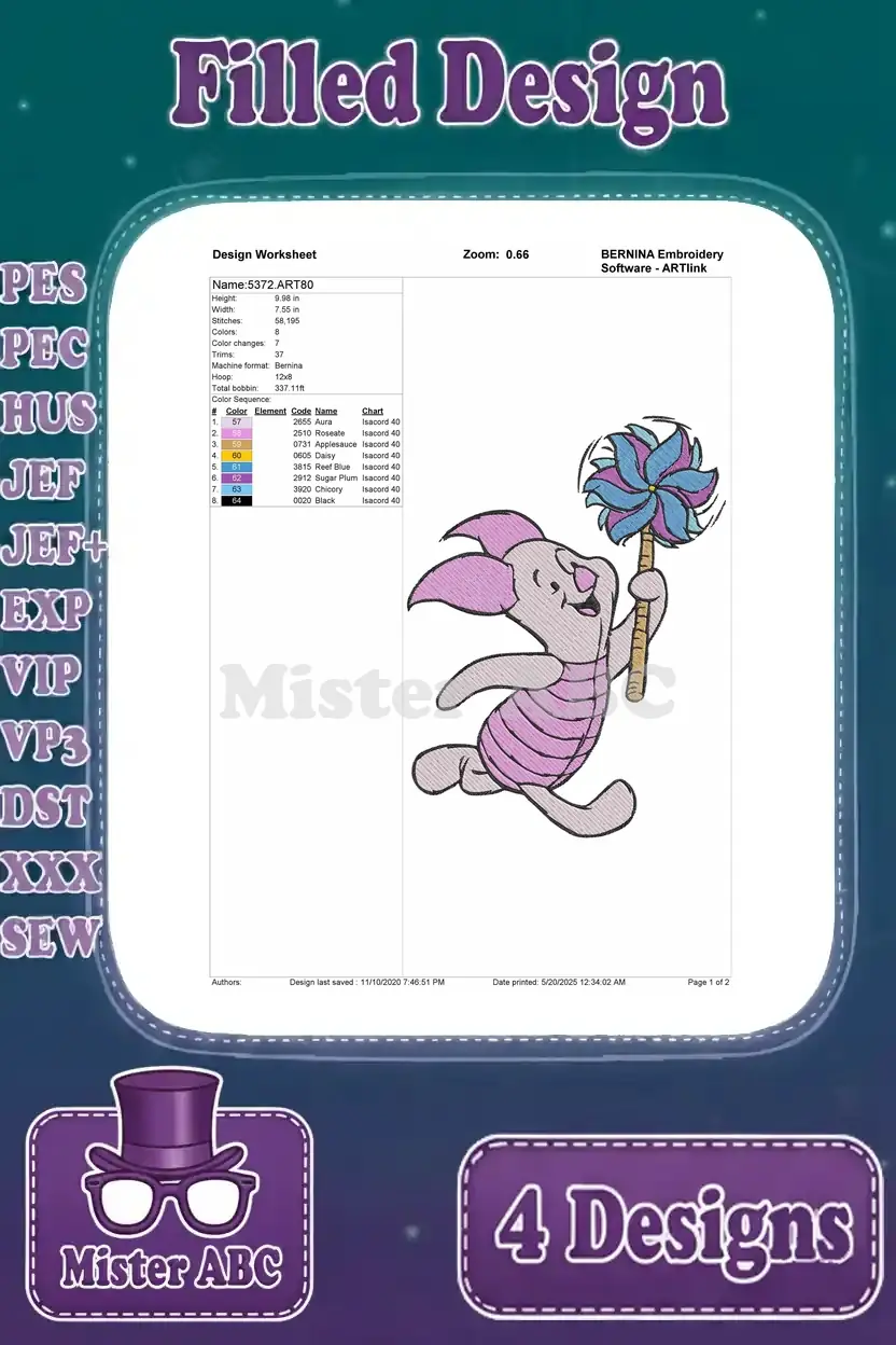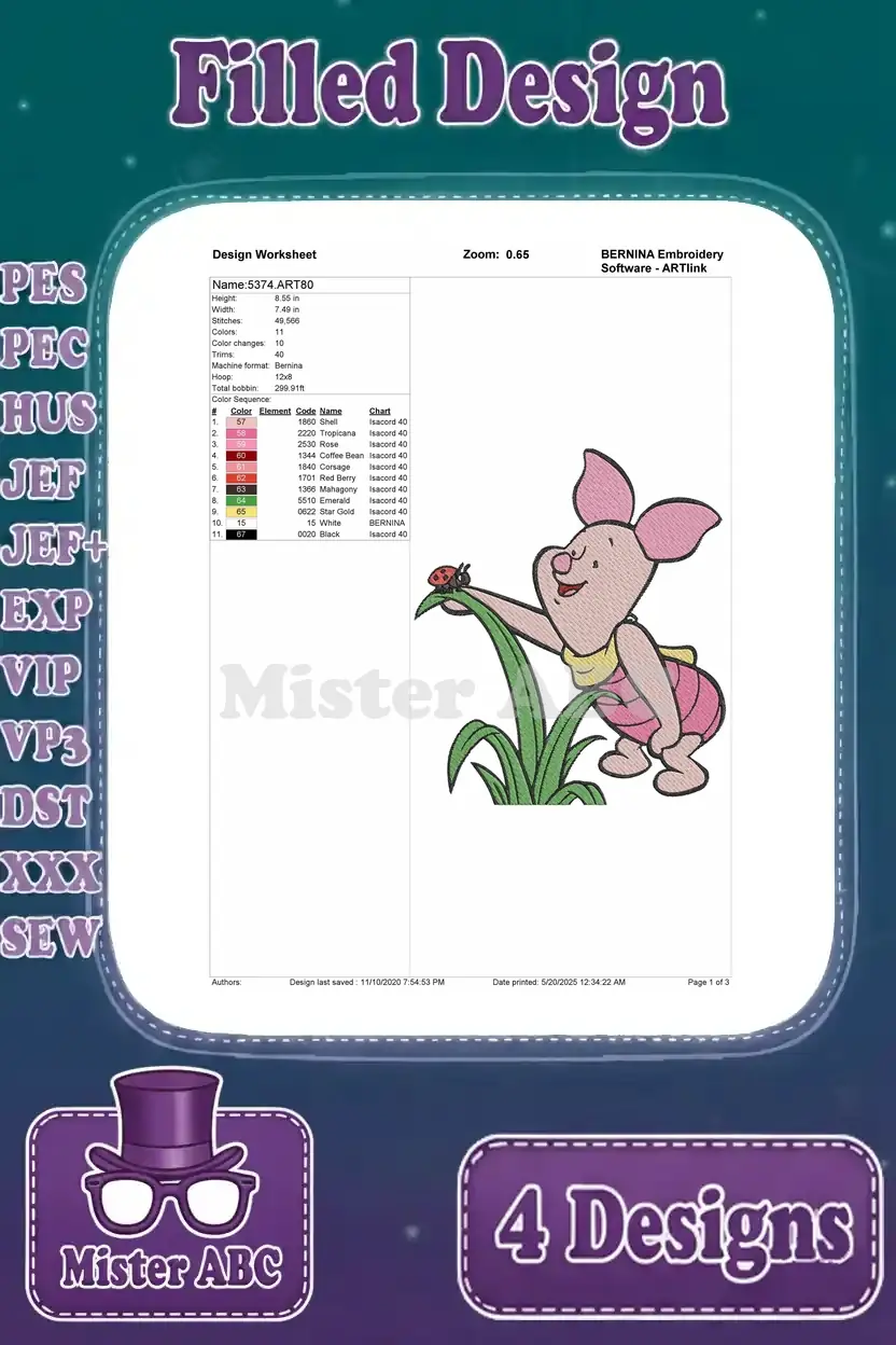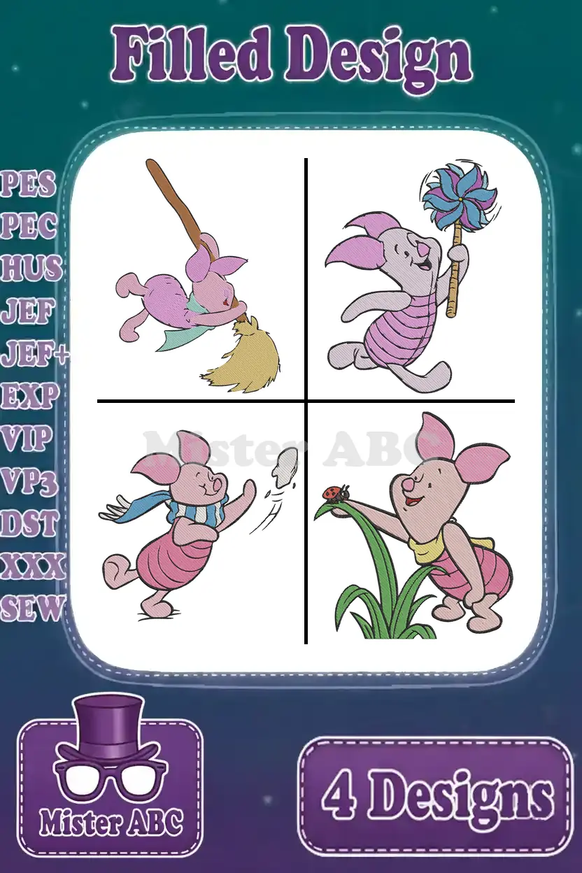 Winnie The Pooh – Piglet’S Joyful Day Out – Sweeping Dancing With Pretty Flowers And In The Garden – Hundred Acre Wood – Filled Embroidery Design