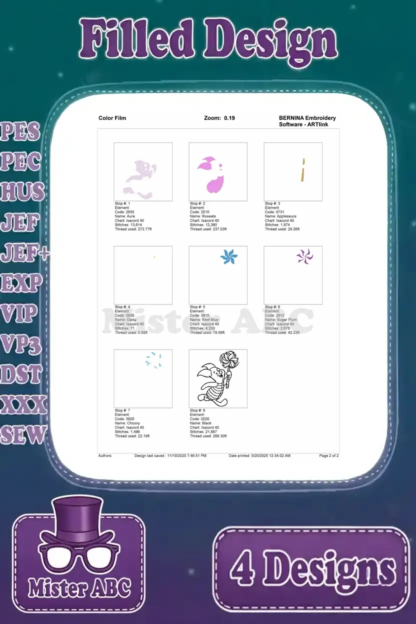| Stitches | Colors | Thread Changes |