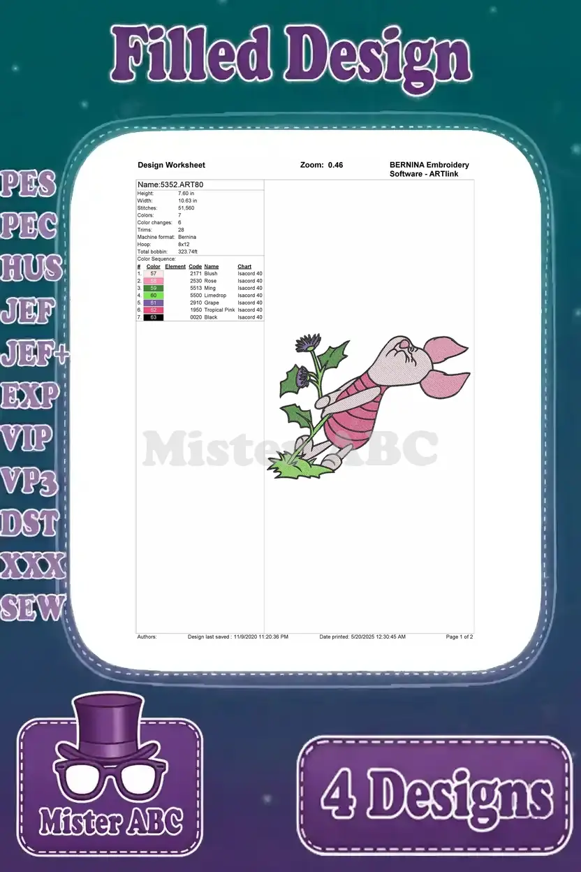 Winnie The Pooh – Piglet’S Many Adventures – Spinning Top Reading Berries And Strongman Fun – Hundred Acre Wood Antics – Filled Embroidery Design