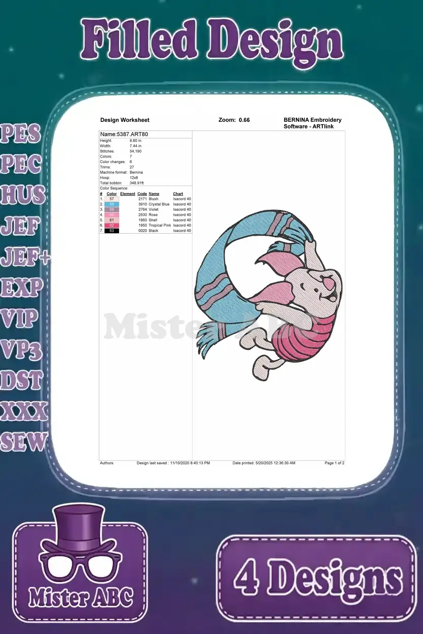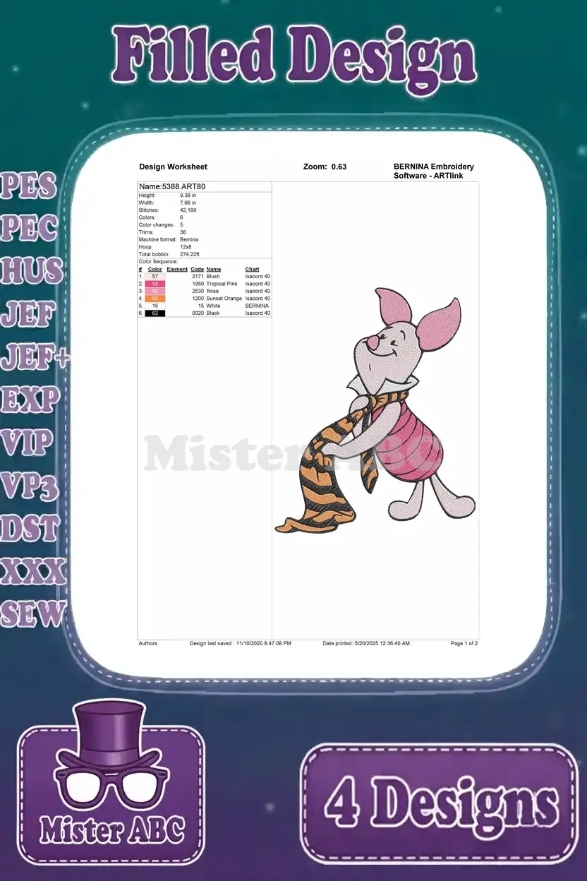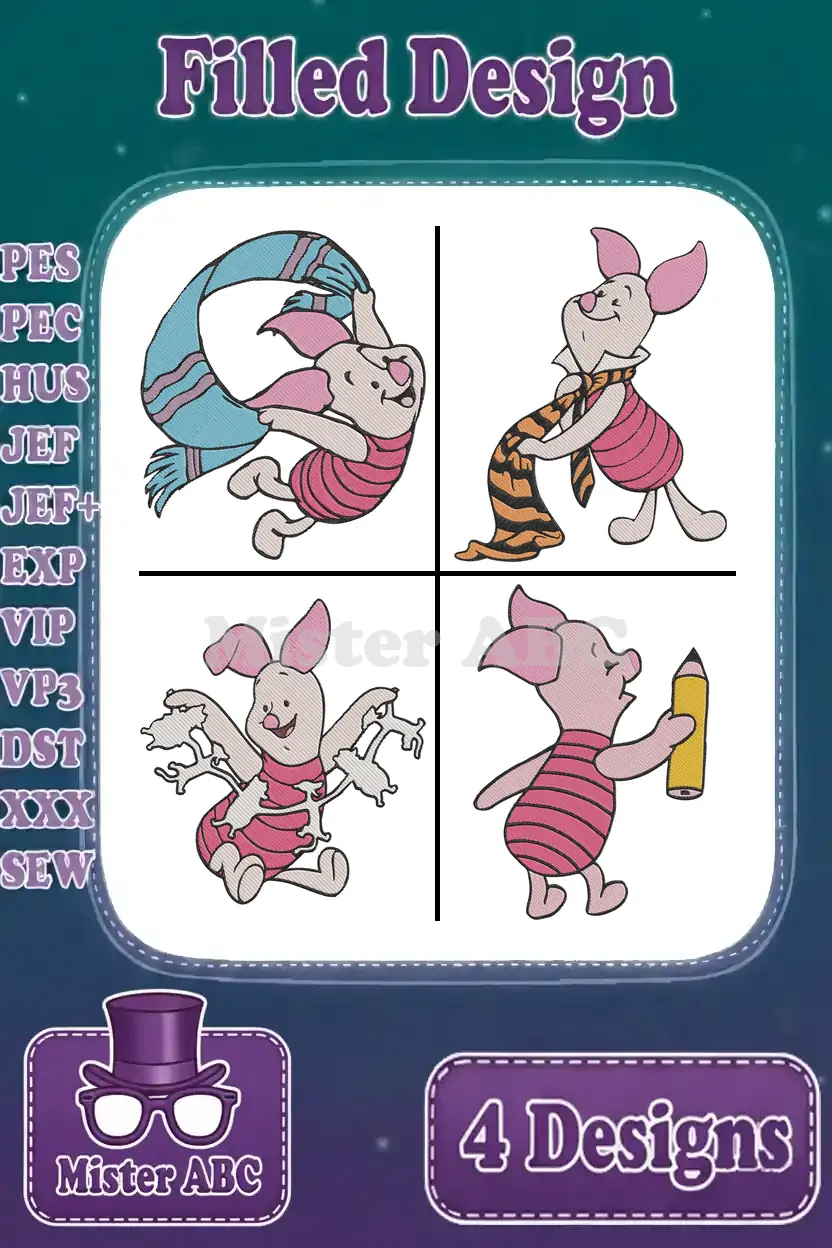 Winnie The Pooh – Piglet’S Whimsical Daily Life – Scarf Tigger Tail Writing And Thinking Poses – Hundred Acre Wood – Filled Embroidery Design