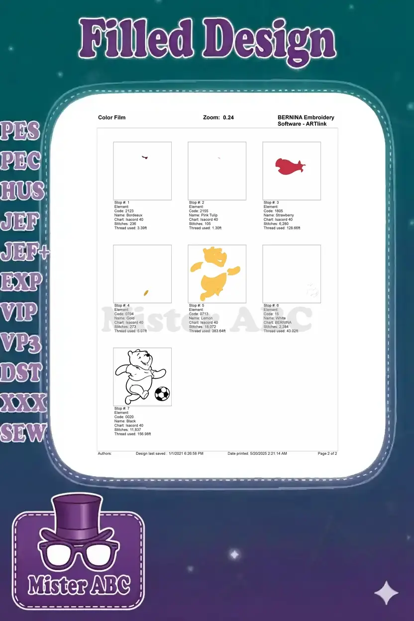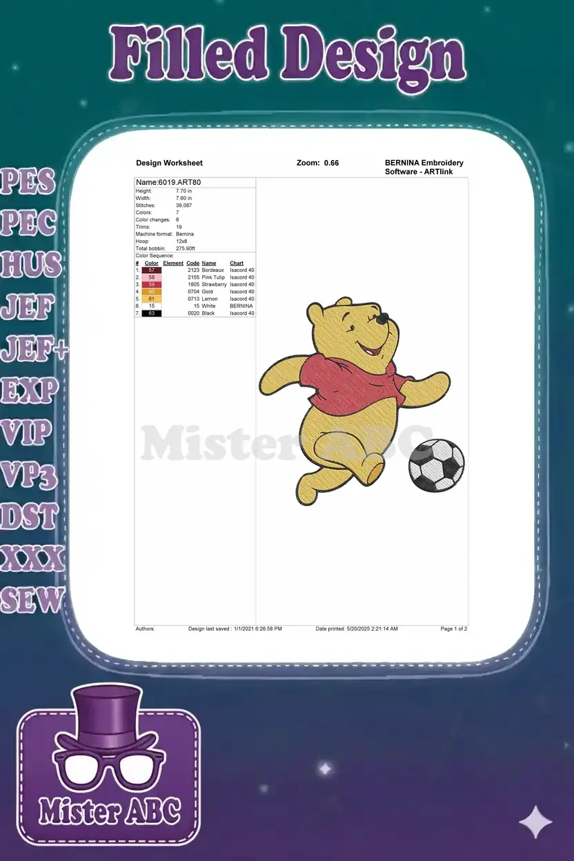 Winnie the Pooh playing soccer character embroidery designs for kids