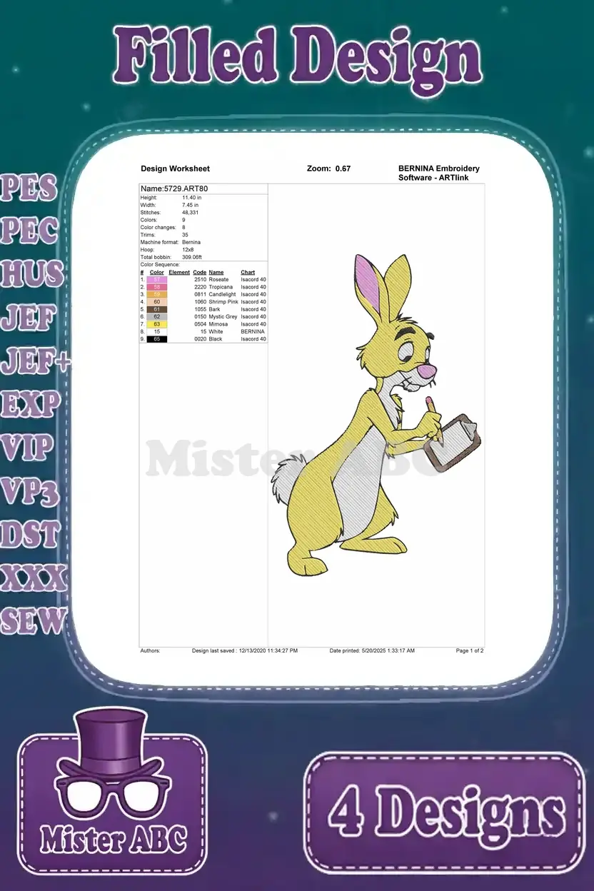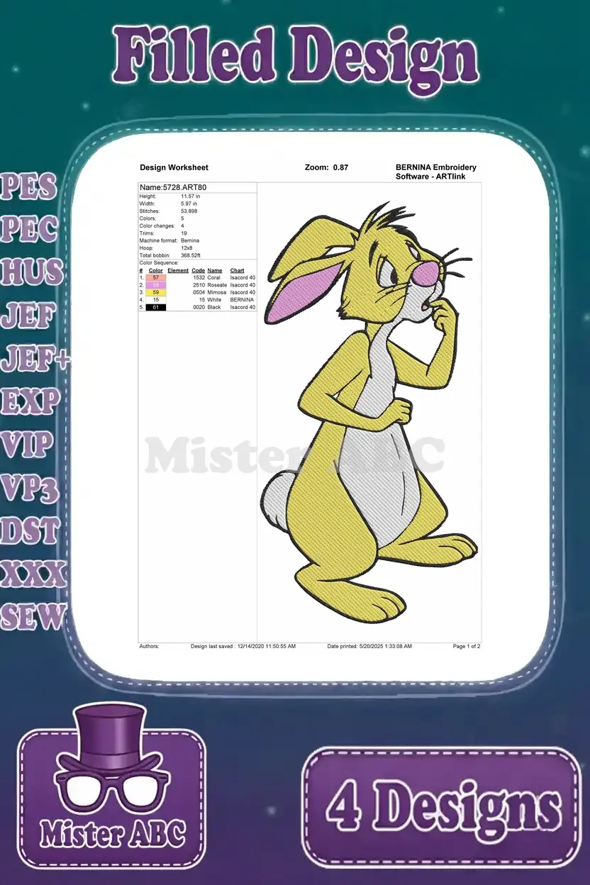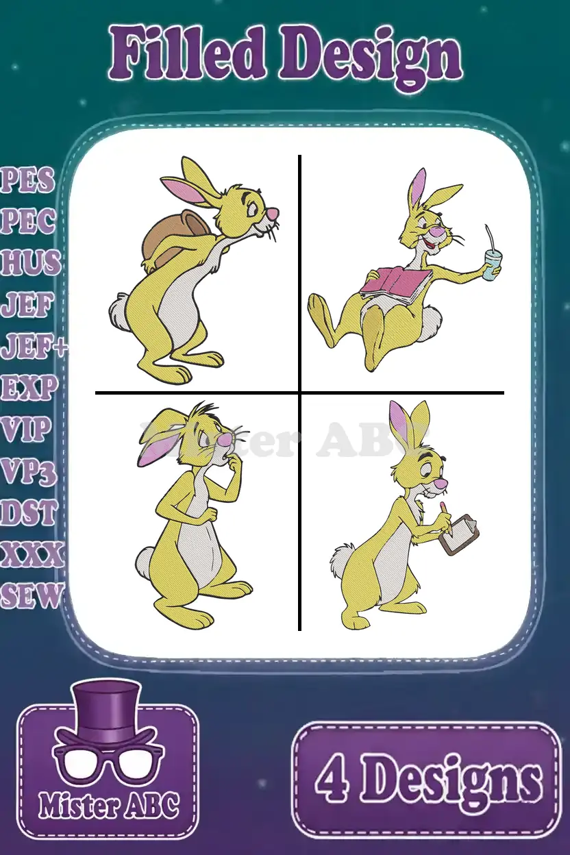 Winnie The Pooh Rabbit With Backpack Painting Thoughtful And Surprised Poses – Filled Embroidery Design