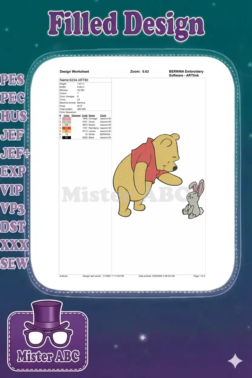 Winnie the Pooh and Rabbit friendship cartoon embroidery designs