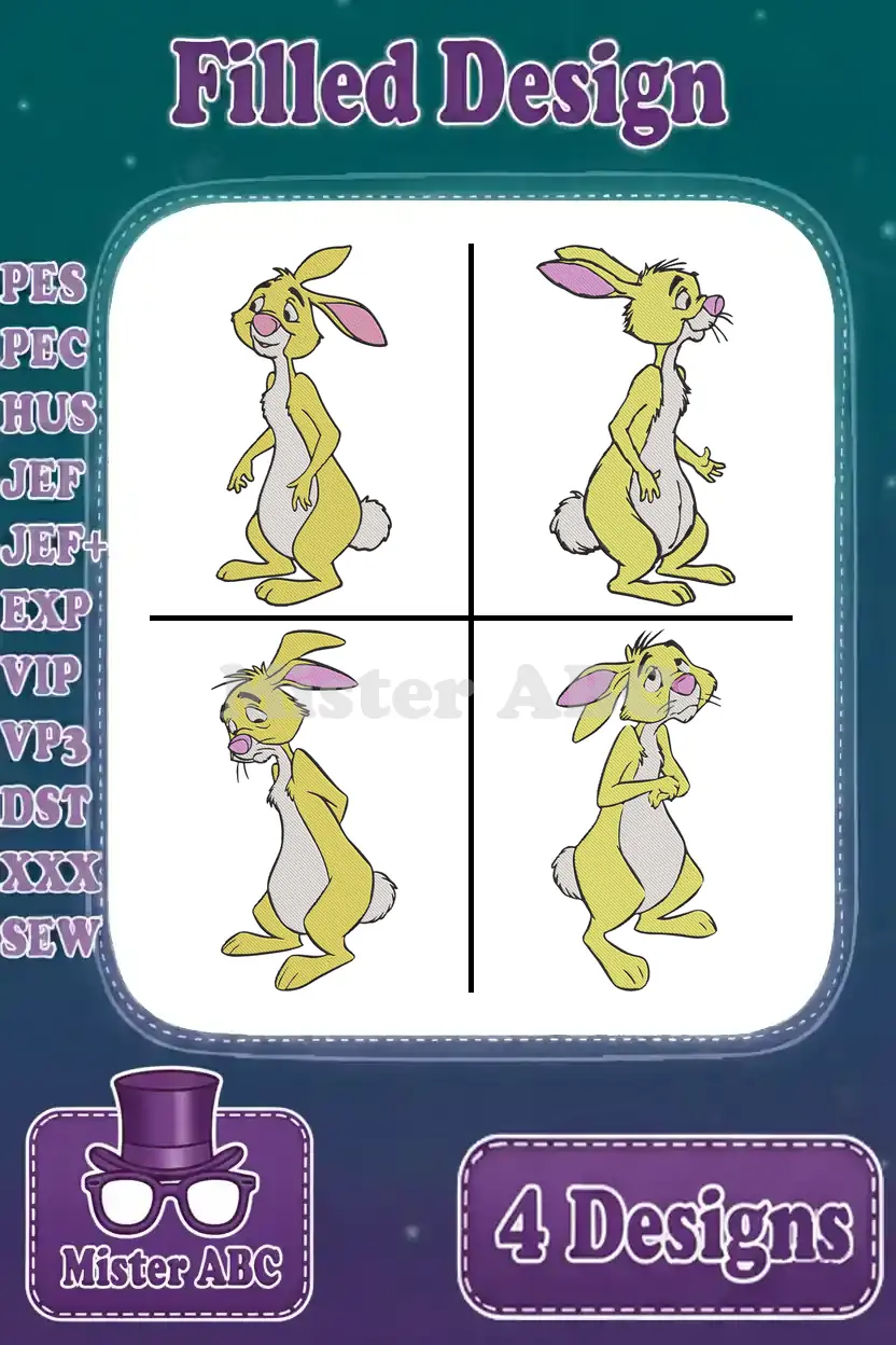 Winnie The Pooh – Rabbit The Practical Bunny – Assorted Classic Standing Poses Collection – Hundred Acre Wood – Filled Embroidery Design