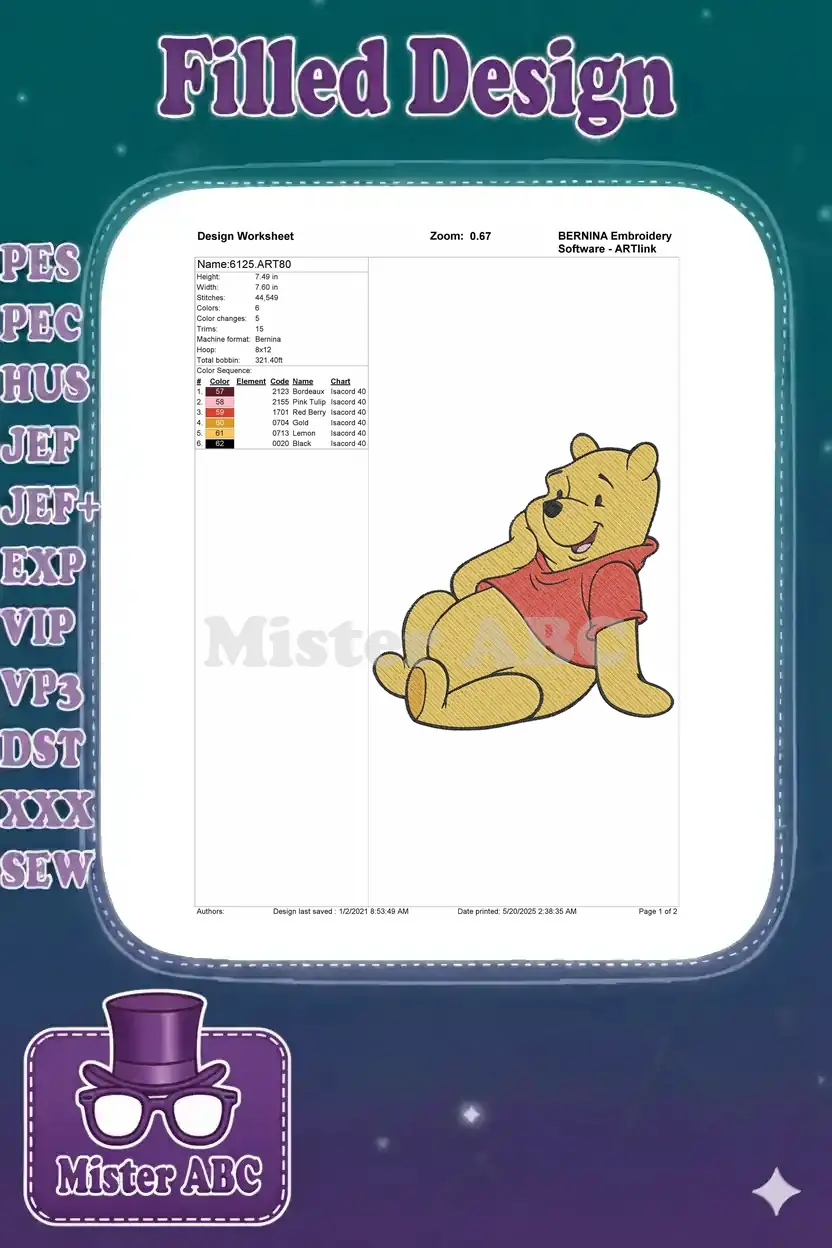 Winnie the Pooh relaxed smiling yellow bear embroidery designs