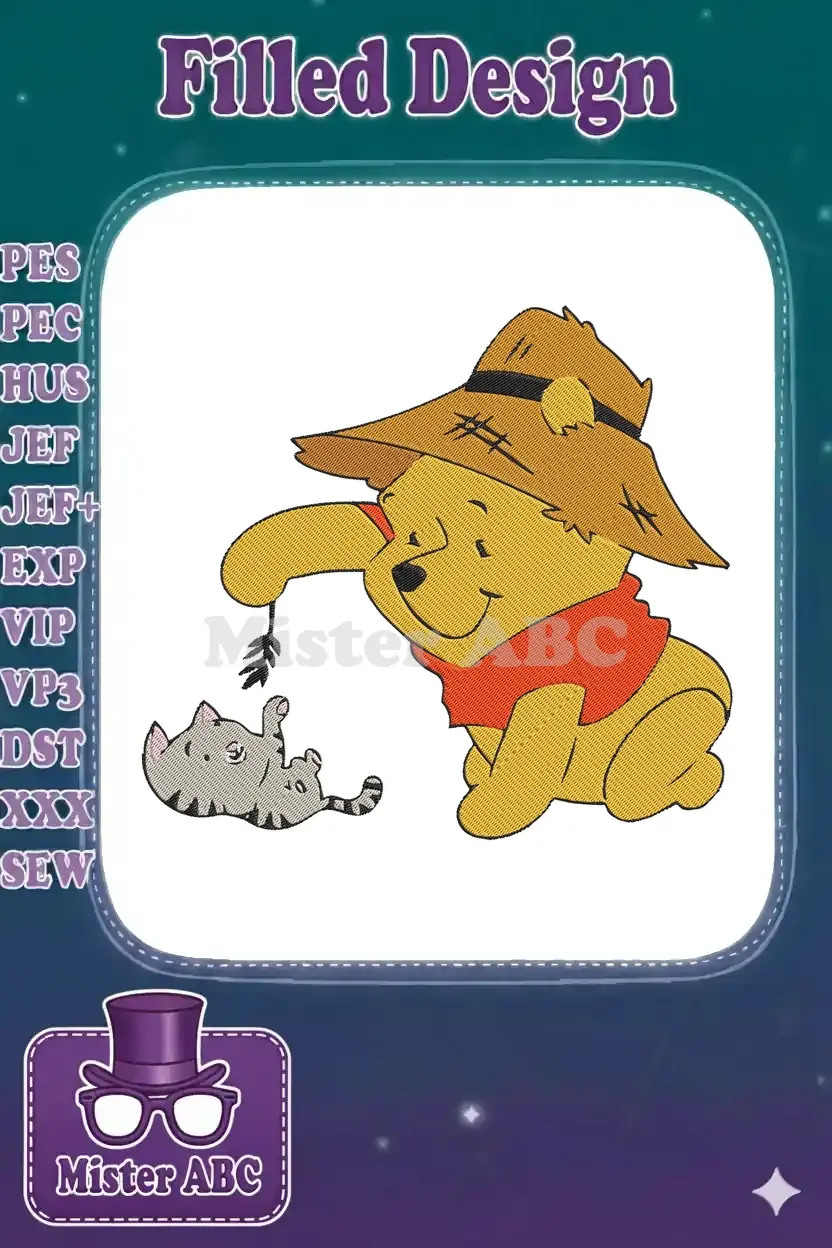 Winnie Pooh Scarecrow Playing with Kitten Embroidery Designs