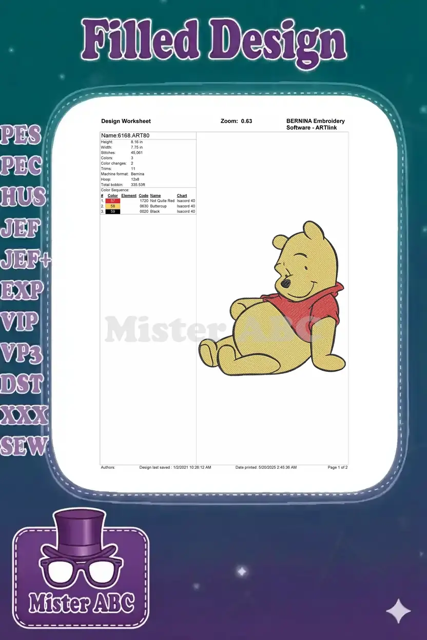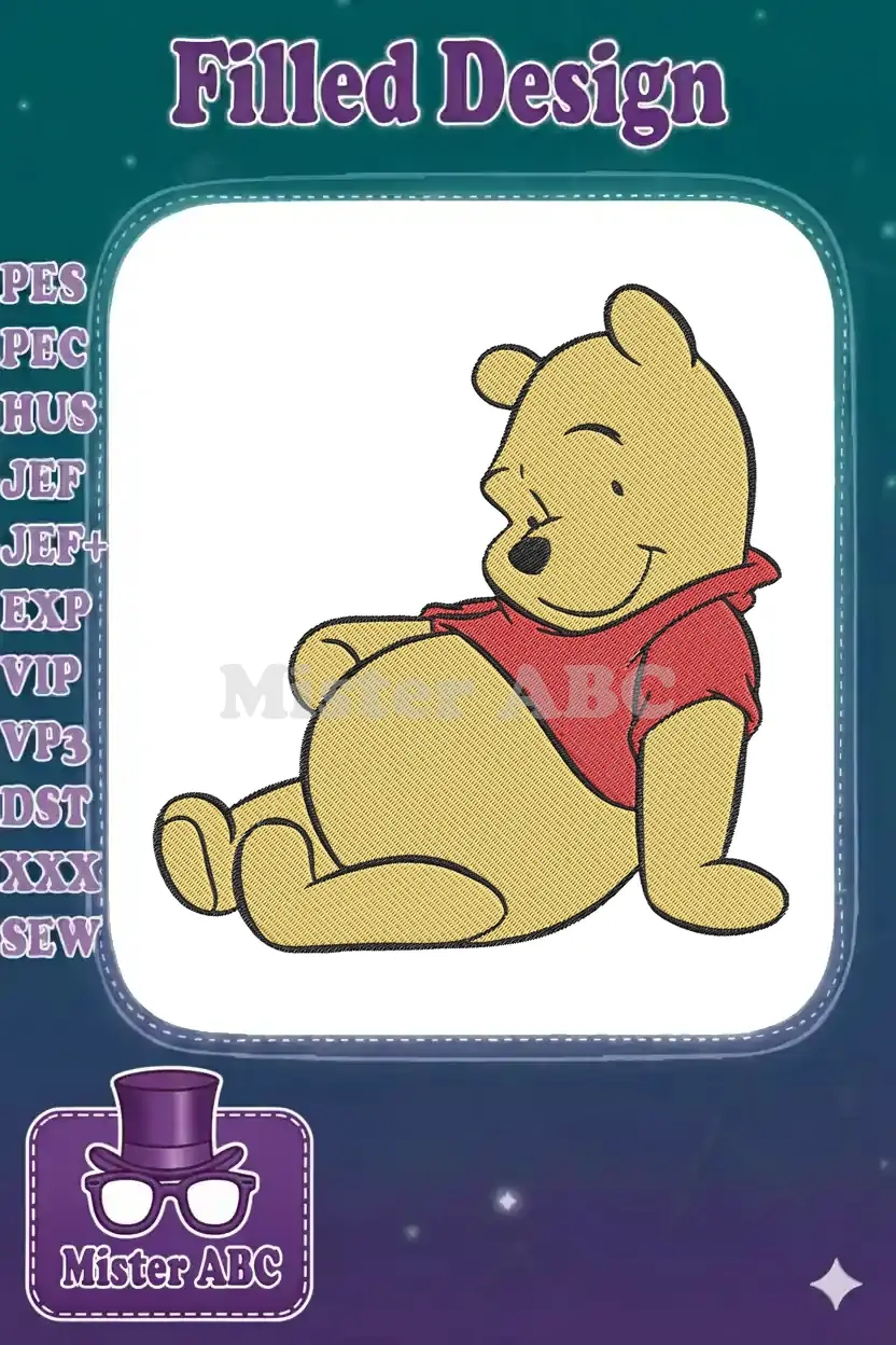 Winnie the Pooh Sitting Smiling Cartoon Embroidery Designs